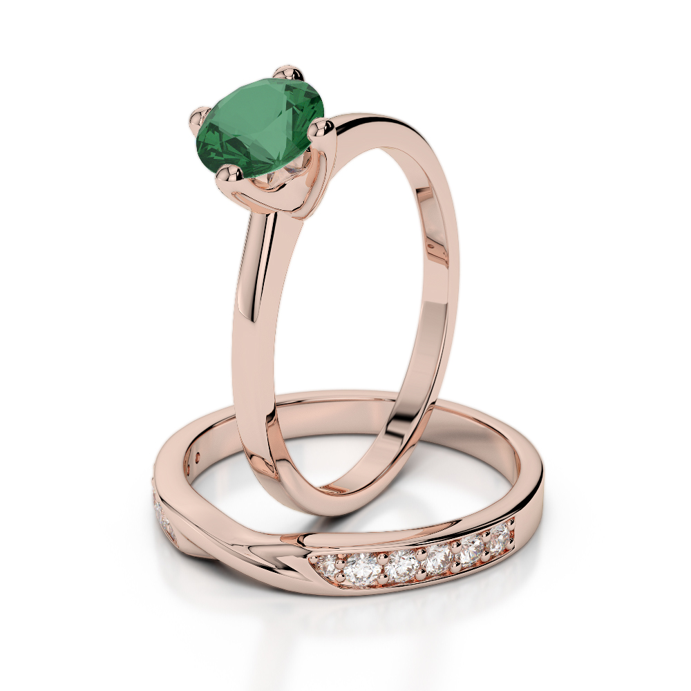 Introducing our stunning emerald bridal set, which includes beautiful beautiful rings embellished with sparkling diamonds. Meticulously crafted to represent everlasting love and dedication, these rings showcase the diamonds in a delicate prong setting, creating a mesmerizing and timeless look. Ideal for commemorating the start of a lifelong partnership, this bridal set truly exemplifies the allure and sophistication of enduring love.