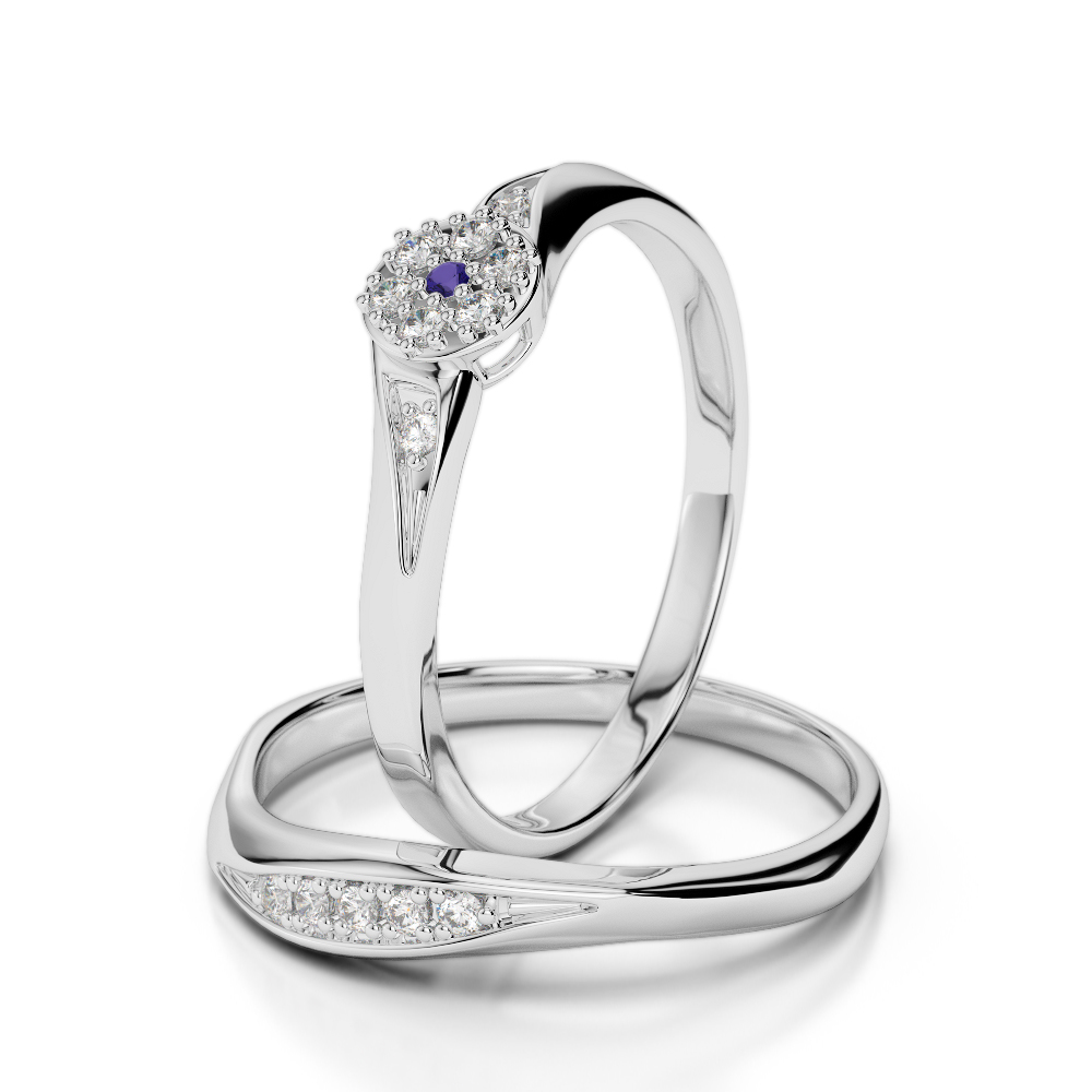 These beautiful tanzanite bridal set rings shine with stunning round brilliant cut diamonds, stealing the spotlight with their dazzling allure. Choosing these for your engagement and wedding rings will leave you thrilled, as they beautifully showcase the glitter and sparkle of your diamonds, ensuring they continue to shine brightly for years to come. Meticulously selected gemstones ensure longevity, making these rings heirlooms to be cherished for generations. Adorned with naturally mined conflict-free diamonds, these rings are expertly pave-set, adding an extra layer of elegance to their design. Crafted to fit seamlessly together, they offer both comfort and style to your look.