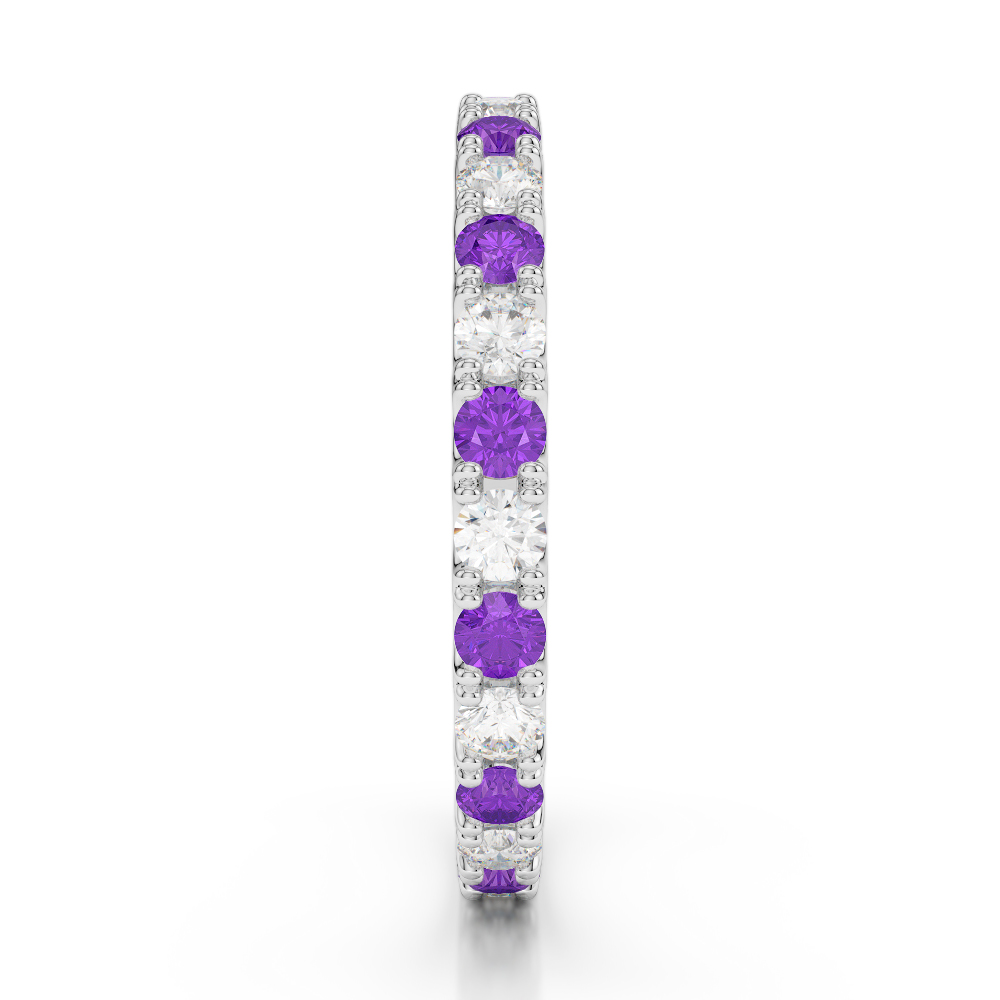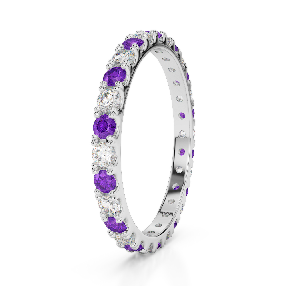 2 MM Claw Set Diamond Full Eternity Ring With Amethyst 0398