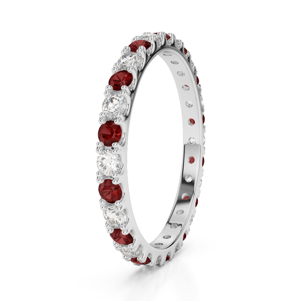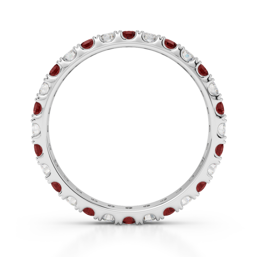 2 MM Claw Set Diamond Full Eternity Ring With Garnet 0398