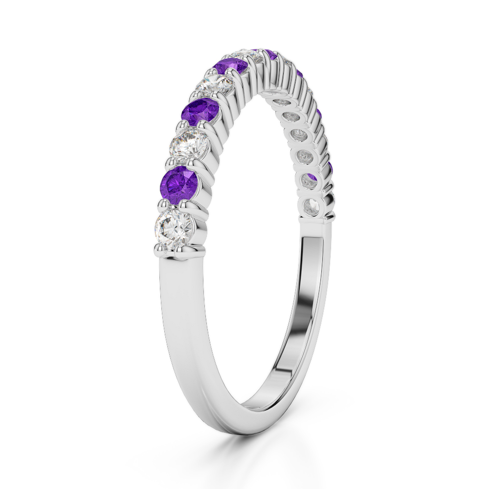 2 MM Prong Set Amethyst & Diamond Half Eternity Ring 0391