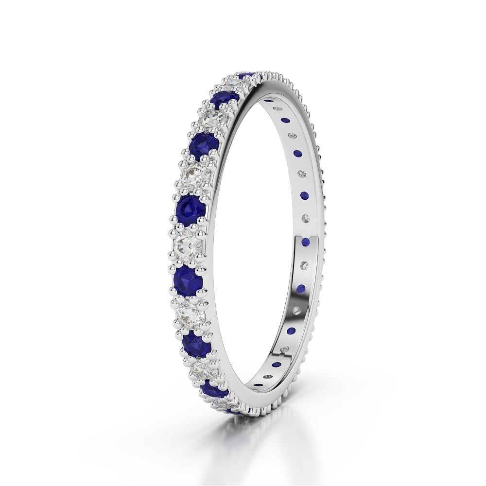 2 MM Prong Set Diamond Full Eternity Ring With Blue Sapphire 0404