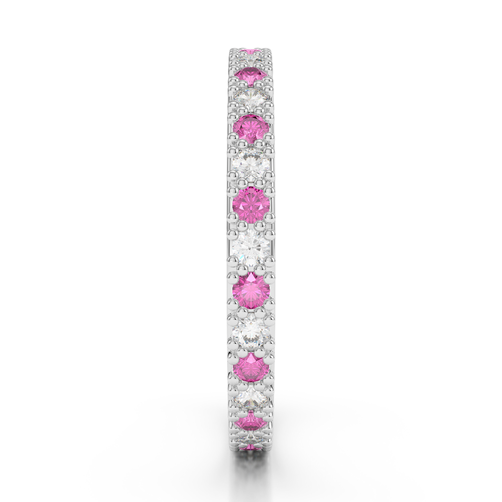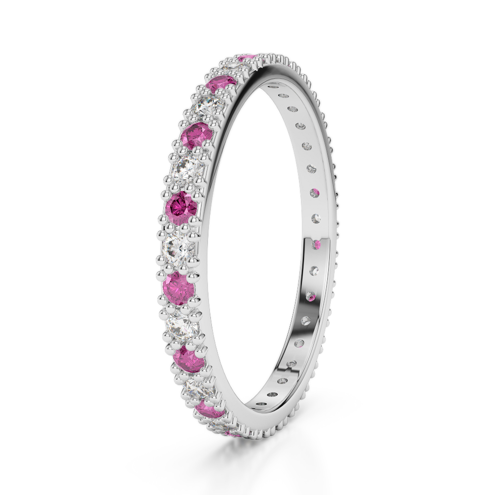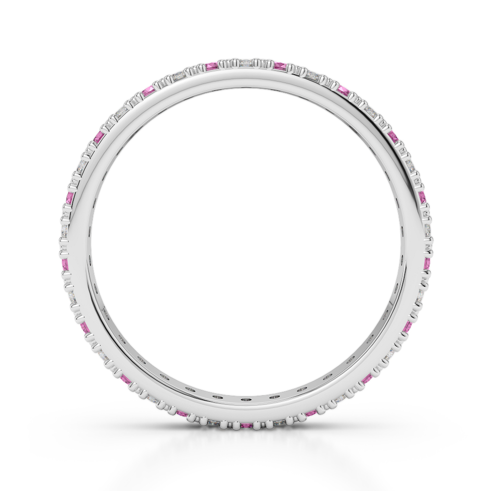 2 MM Prong Set Diamond Full Eternity Ring With Pink Sapphire 0404