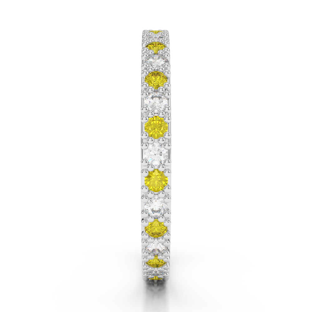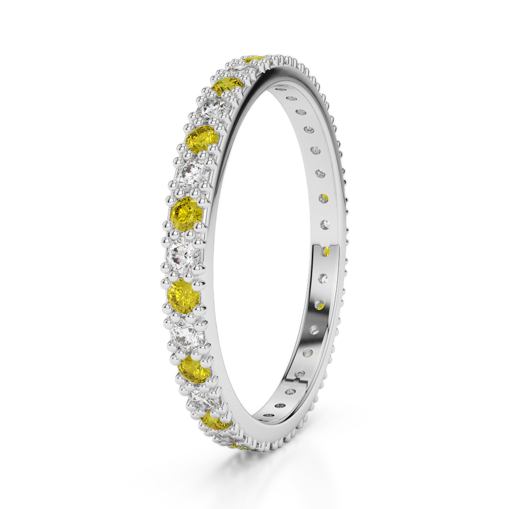 2 MM Prong Set Diamond Full Eternity Ring With Yellow Sapphire 0404