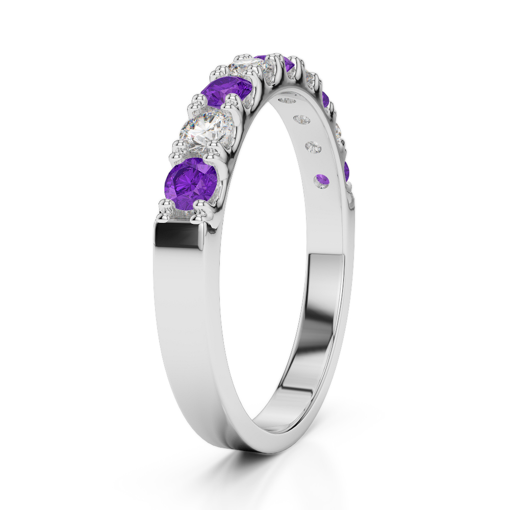 2.5 MM Claw Set Diamond & Amethyst Half Eternity Ring 0402