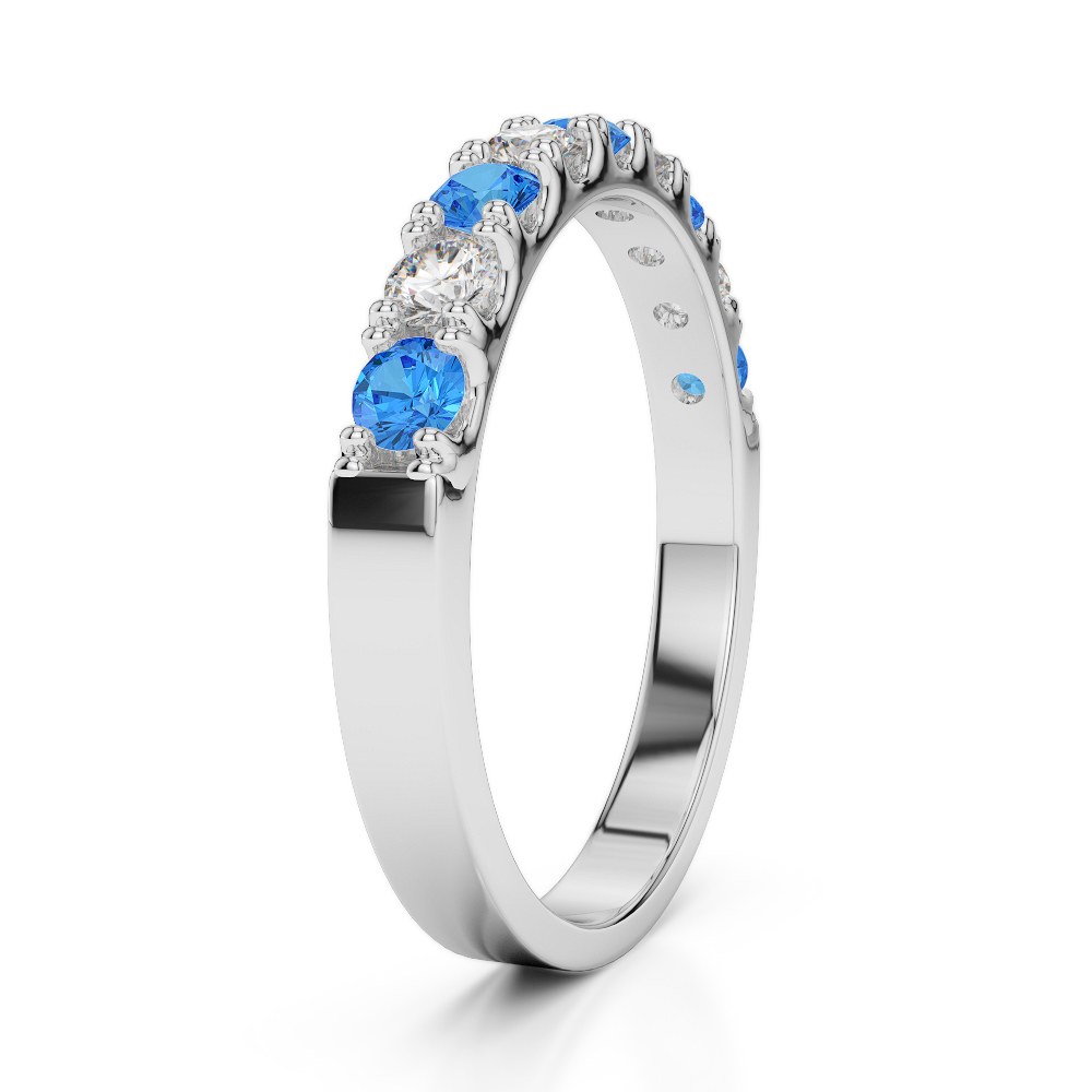 2.5 MM Claw Set Diamond & Blue Topaz Half Eternity Ring 0402