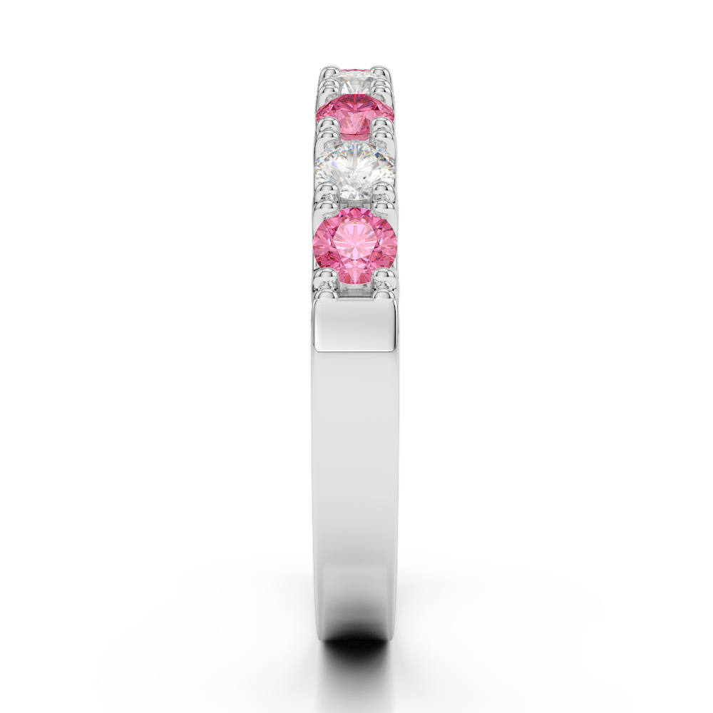 2.5 MM Claw Set Diamond & Pink Tourmaline Half Eternity Ring 0402