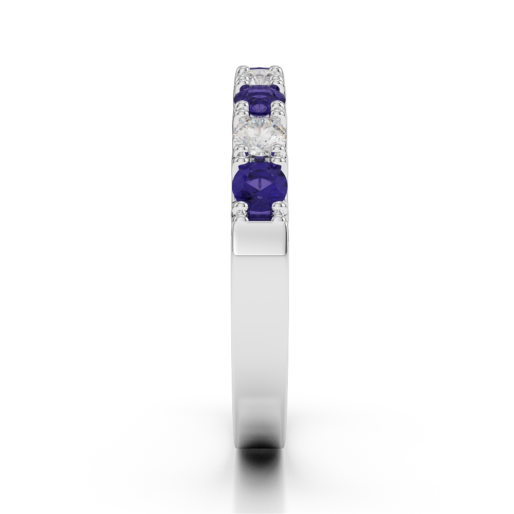 2.5 MM Claw Set Diamond & Tanzanite Half Eternity Ring 0402