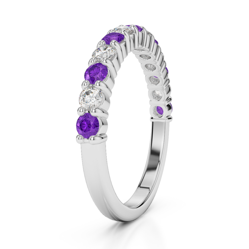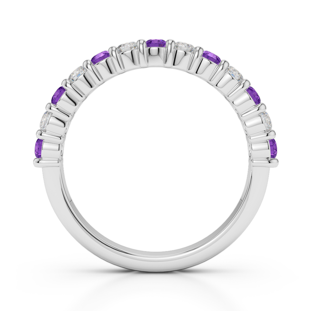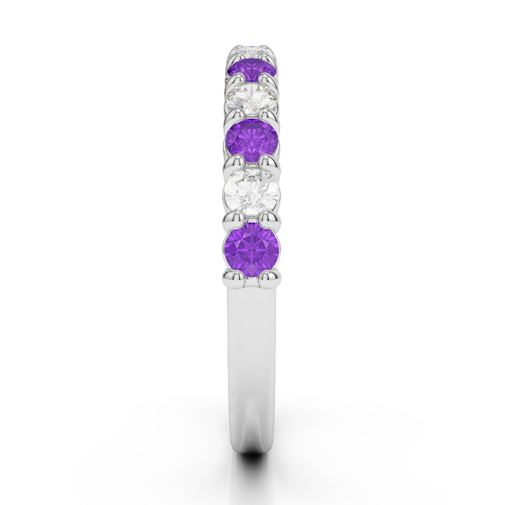 2.5 MM Prong Set Diamond Half Eternity Ring With Amethyst 0392
