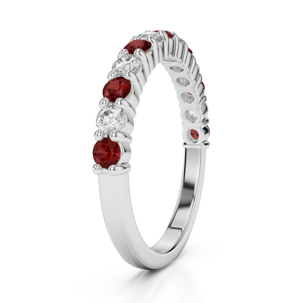 2.5 MM Prong Set Diamond Half Eternity Ring With Garnet 0392
