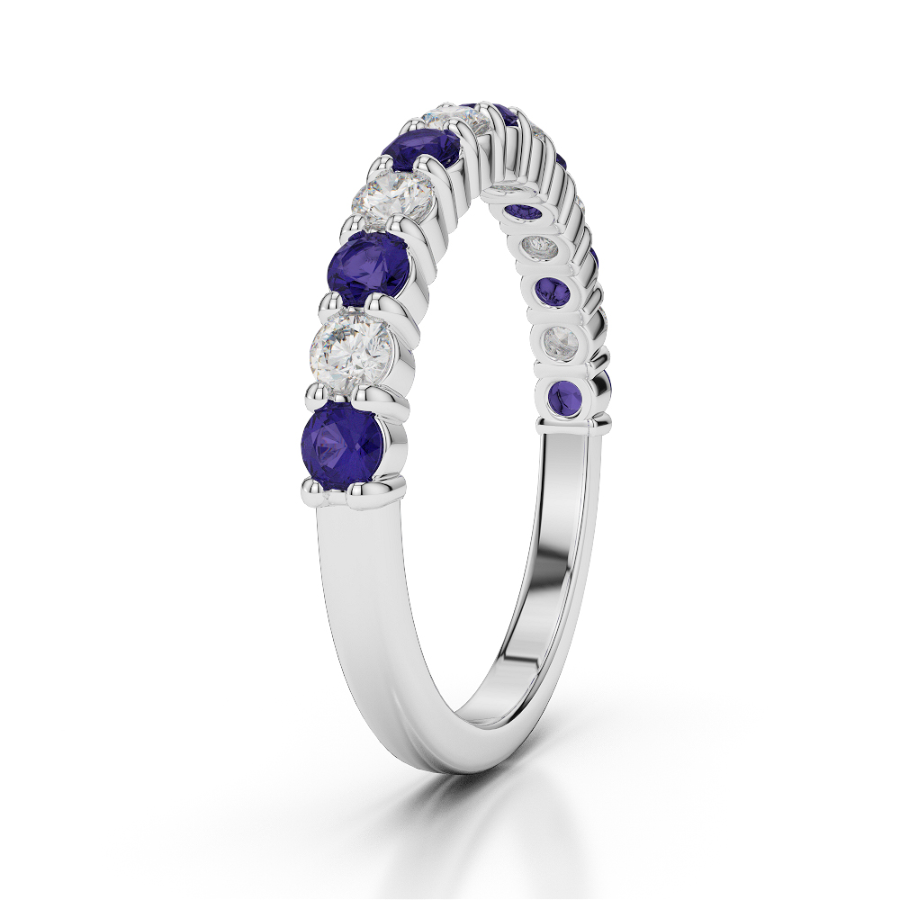 2.5 MM Prong Set Diamond Half Eternity Ring With Tanzanite 0392
