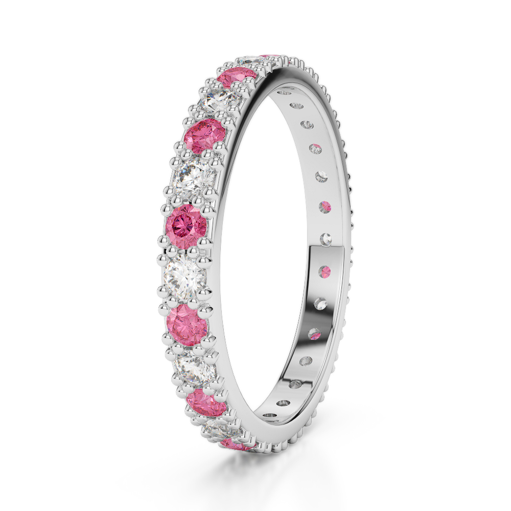 2.5 MM Prong Set Pink Tourmaline Full Eternity Ring With Diamond 0405