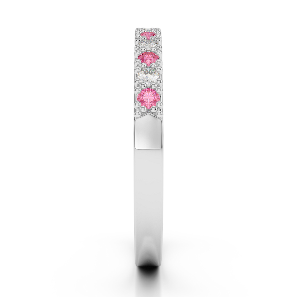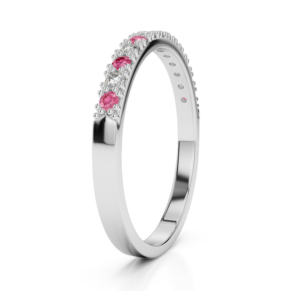 2.5 MM Prong Set Pink Tourmaline Half Eternity Ring With Diamond 0407