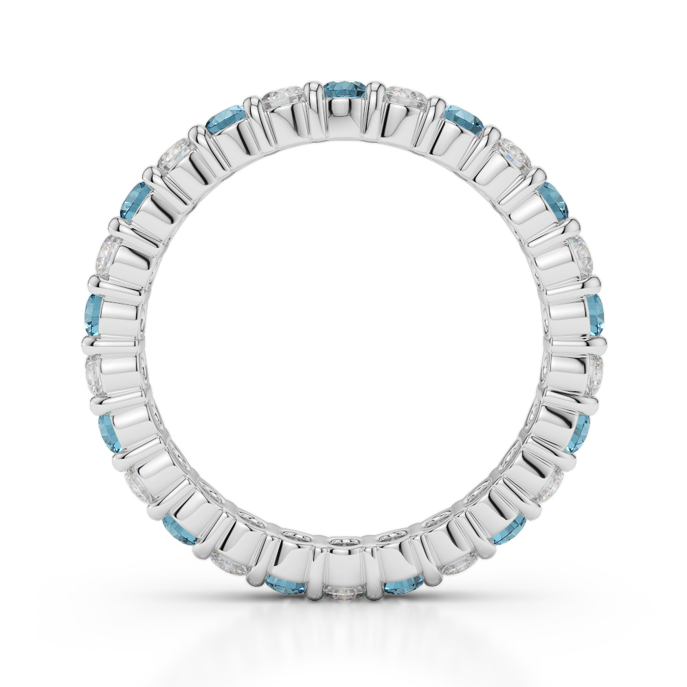 2.5 MM Round Cut Aquamarine Full Eternity Ring With Diamond 0389