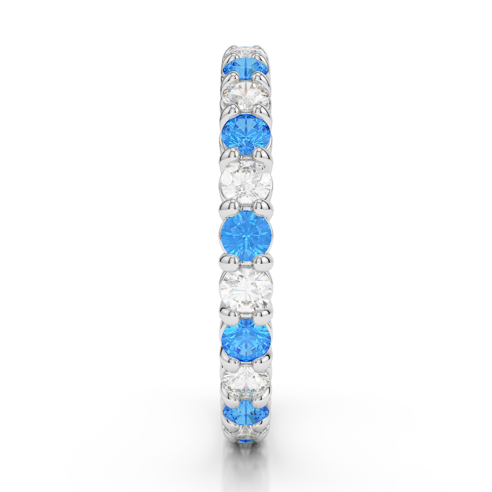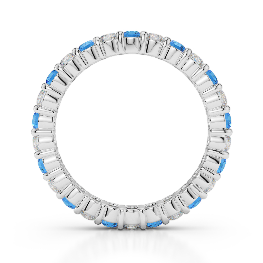 2.5 MM Round Cut Blue Topaz Full Eternity Ring With Diamond 0389