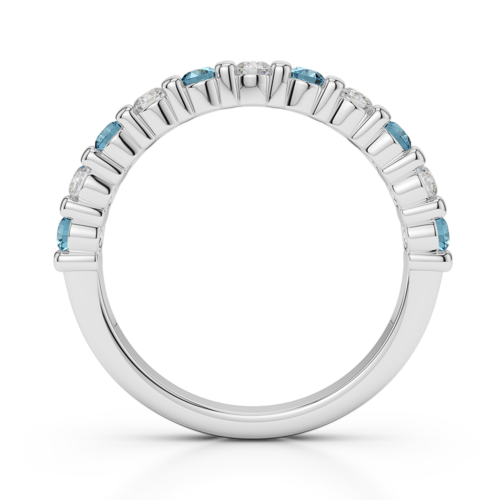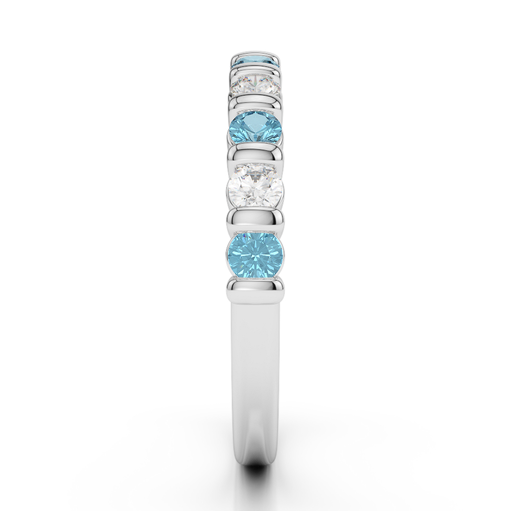 2.5MM Bar Set Aquamarine Half Eternity Ring With Diamond 0374