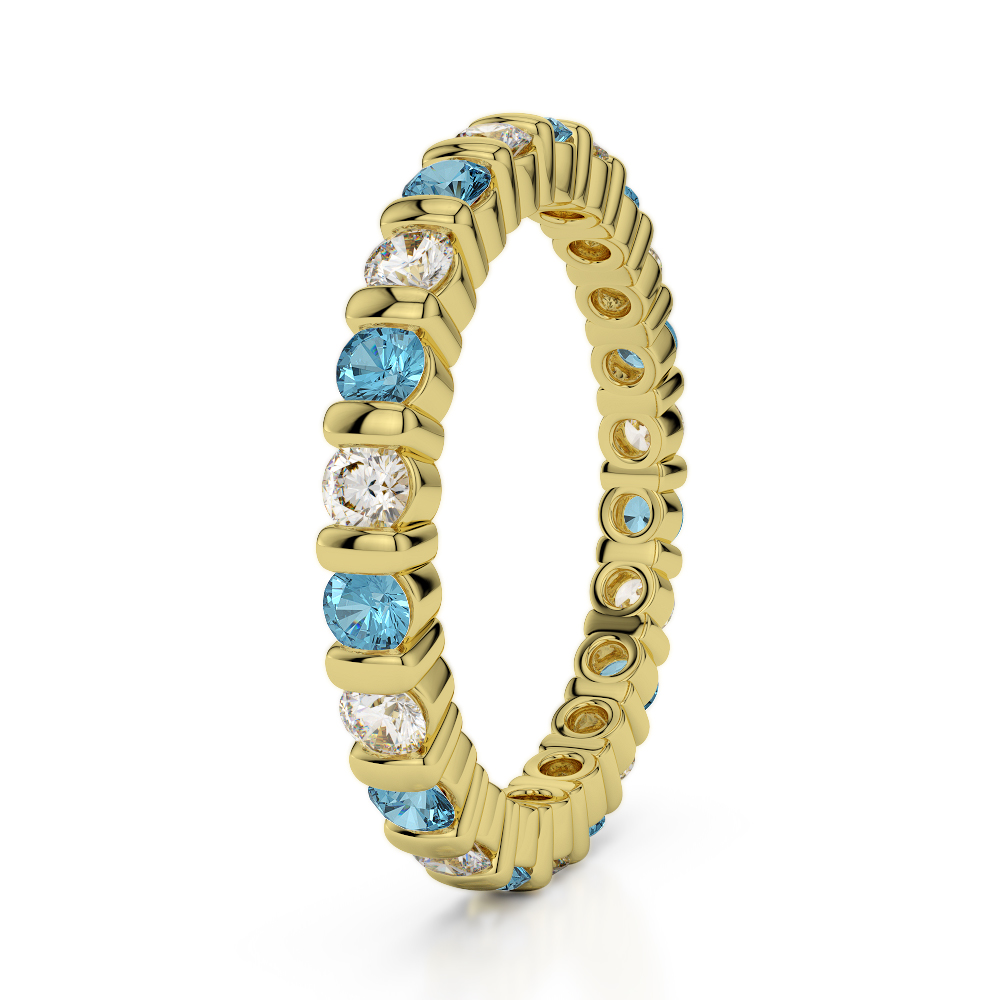 2.5MM Bar Set Diamond and Aquamarine Full Eternity Ring 0371