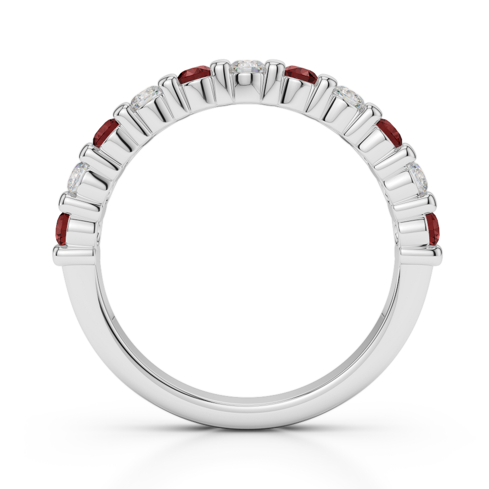 2.5MM Bar Set Garnet Half Eternity Ring With Diamond 0374