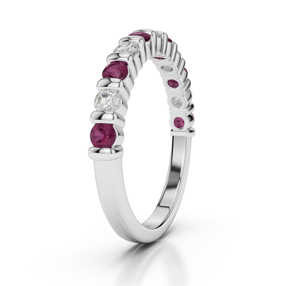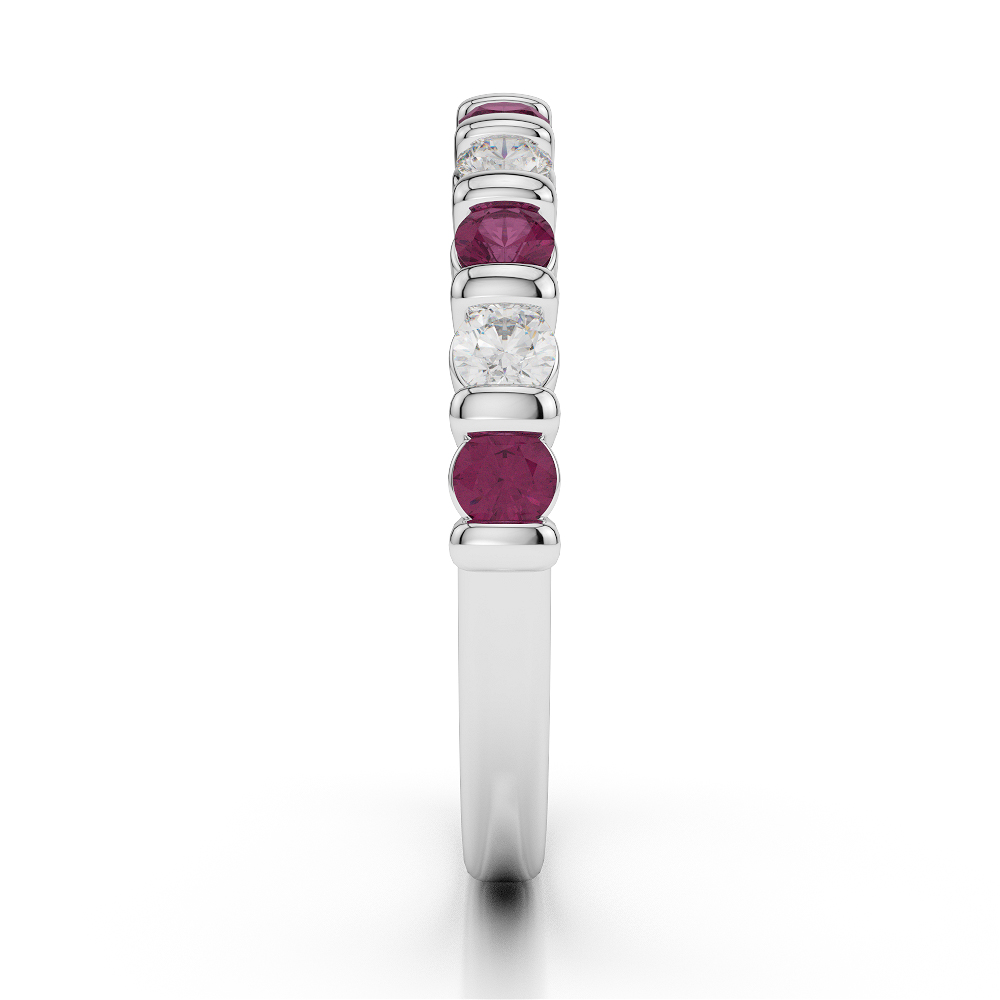 2.5MM Bar Set Ruby Half Eternity Ring With Diamond 0374