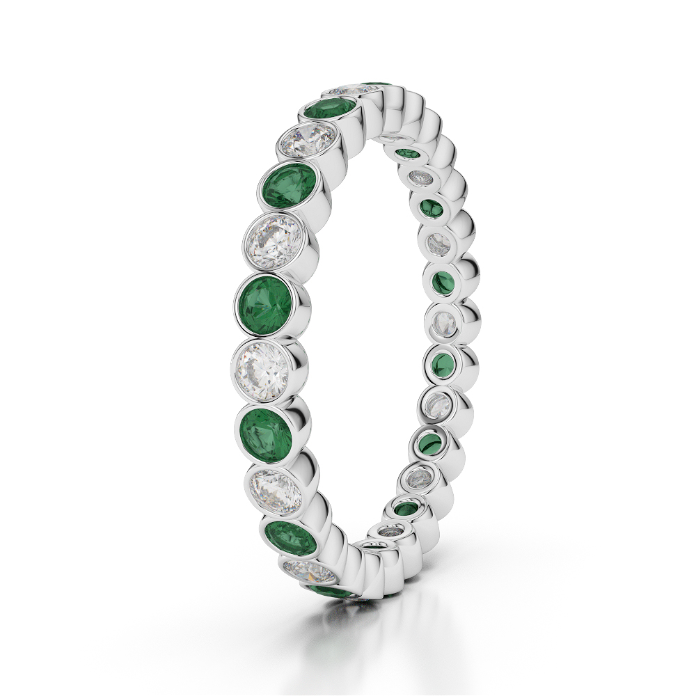 2.5MM Bezel Emerald and Diamond Full Eternity Ring 0377