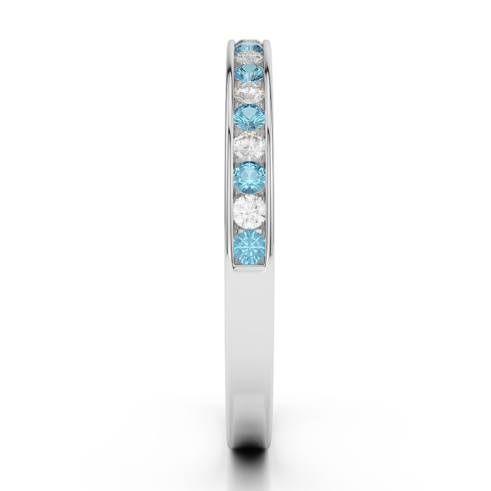 2.5MM Channel Set Diamond and Aquamarine Half Eternity Ring 0367