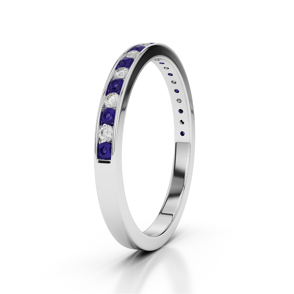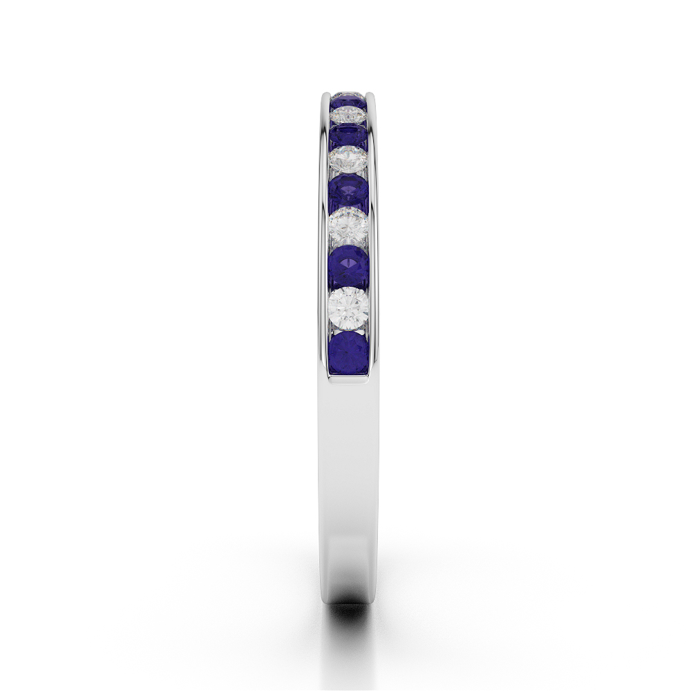 2.5MM Channel Set Diamond and Tanzanite Half Eternity Ring 0367