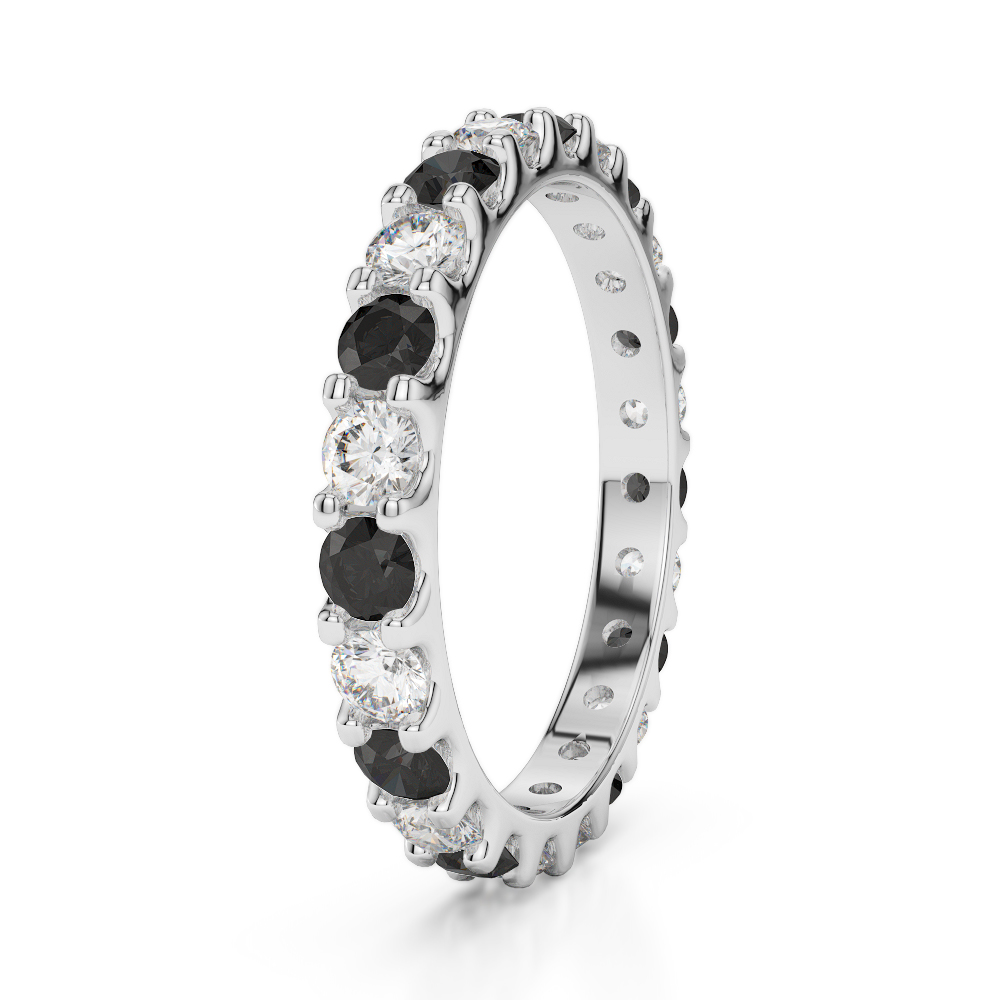 Our black diamond and diamond eternity ring is a symbol of eternal love and elegance, featuring vibrant black diamonds and sparkling diamonds. Crafted with precision, it radiates brilliance through a split prong setting. Perfect for anniversaries, engagements, or as a luxurious statement piece.