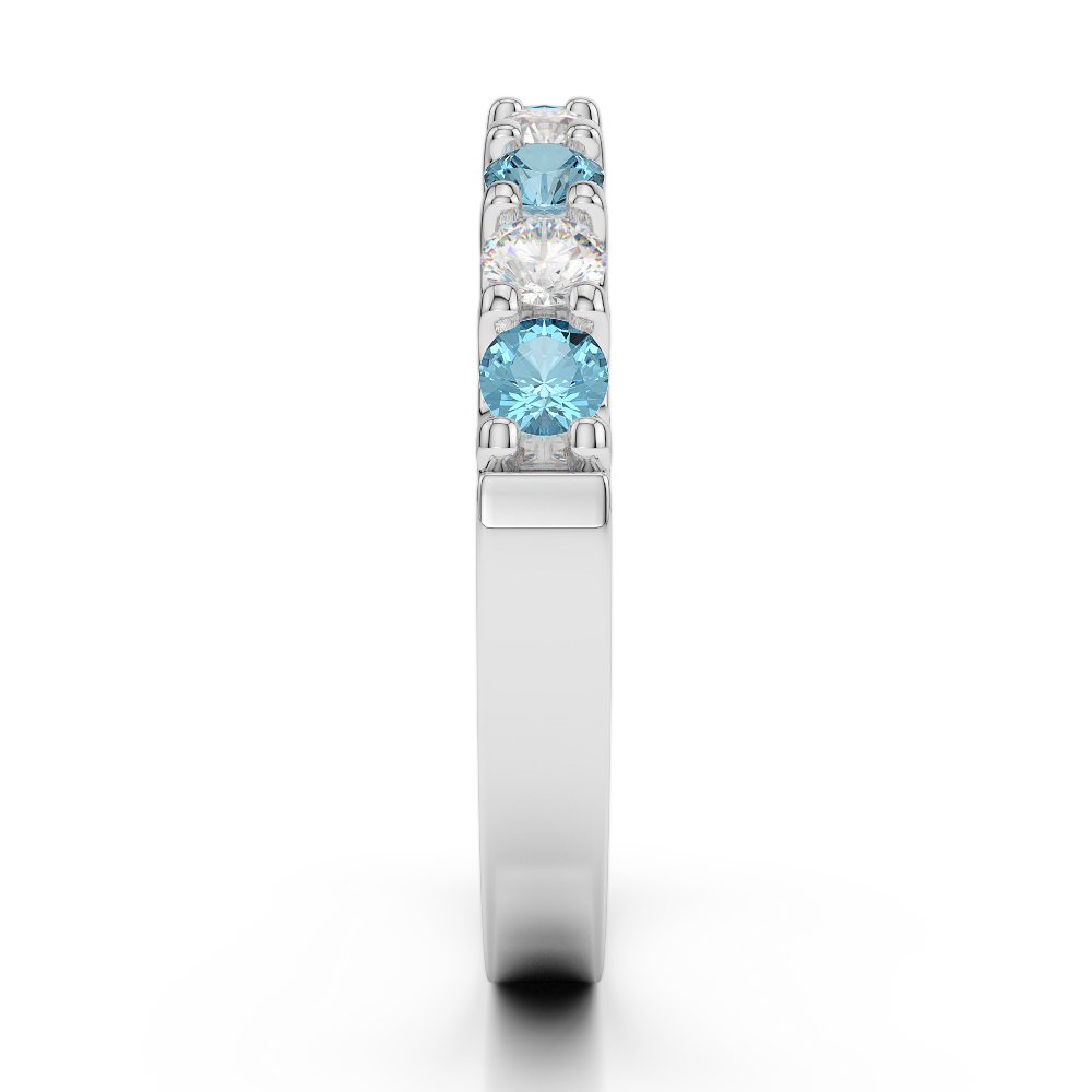 2.5MM Claw Set Diamond & Aquamarine Half Eternity Ring 0386