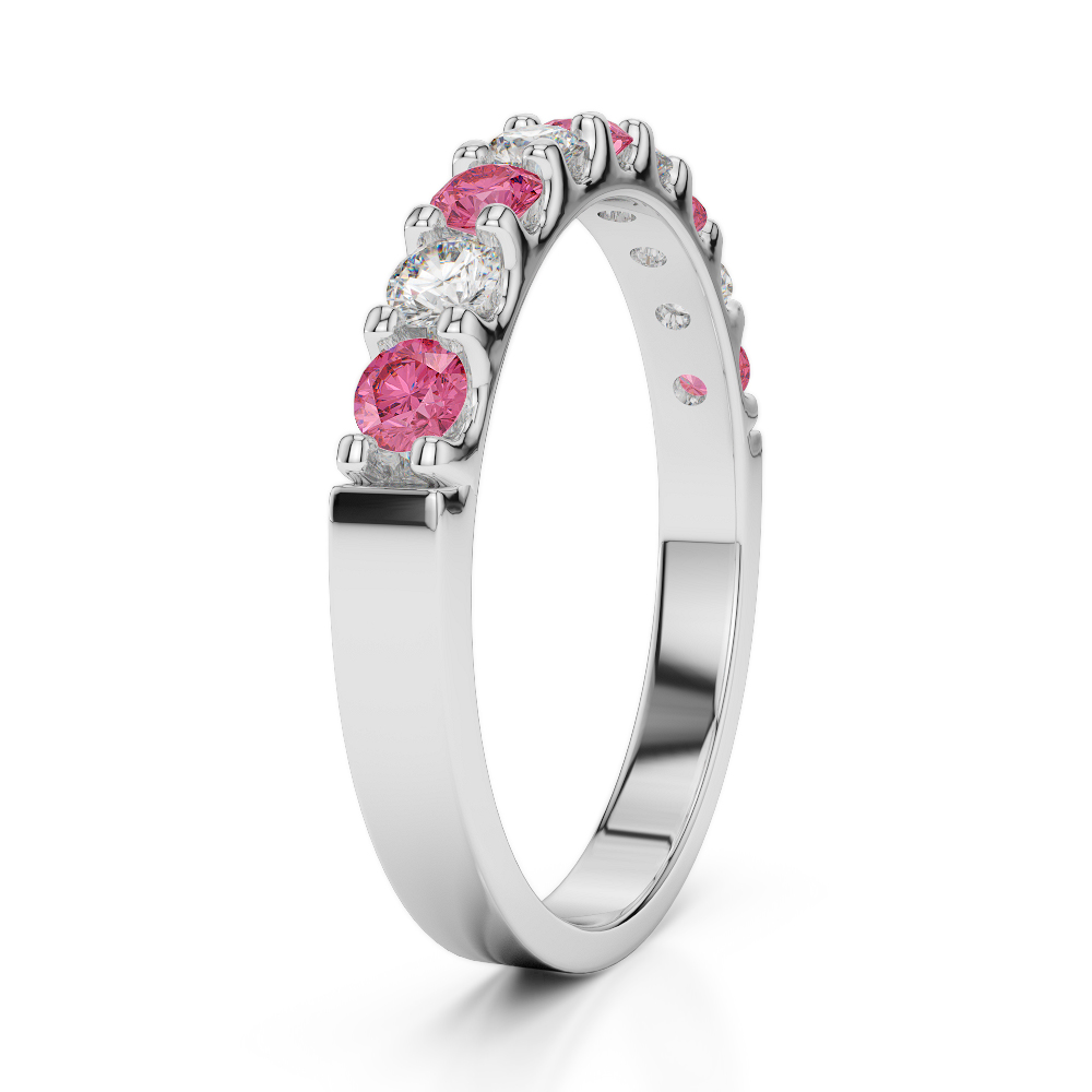 2.5MM Claw Set Diamond & Pink Tourmaline Half Eternity Ring 0386