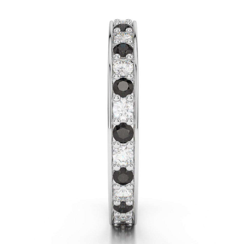 This black diamond and diamond eternity ring symbolizes love and commitment. Crafted with precision, it features a row of black diamonds and sparkling diamonds in a pave setting.This timeless and elegant piece is perfect for special occasions or as a meaningful gift.