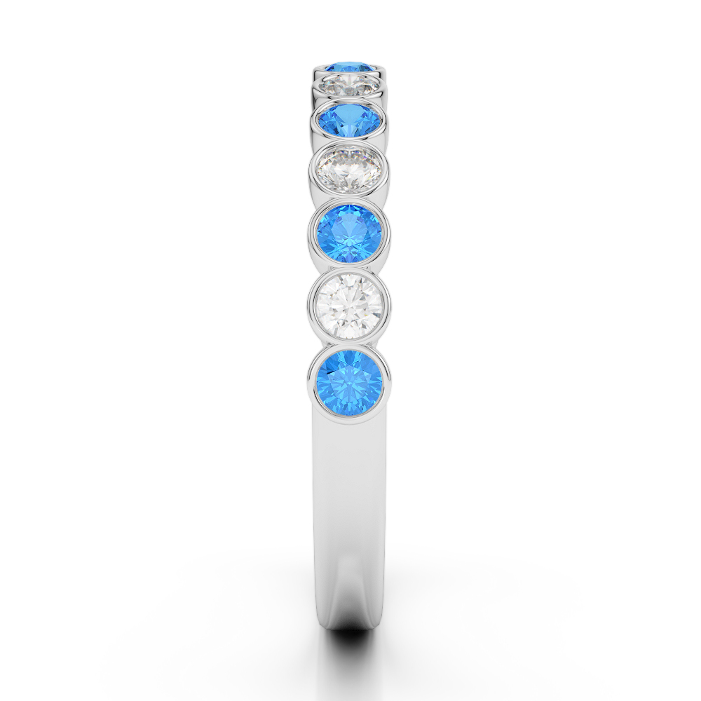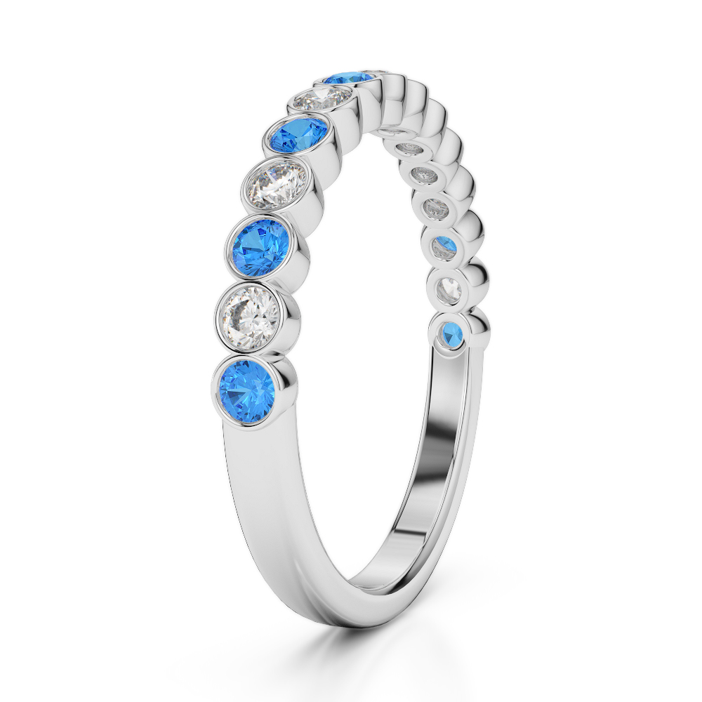 2.5MM Rubover Diamond and Blue Topaz Half Eternity Ring 0380