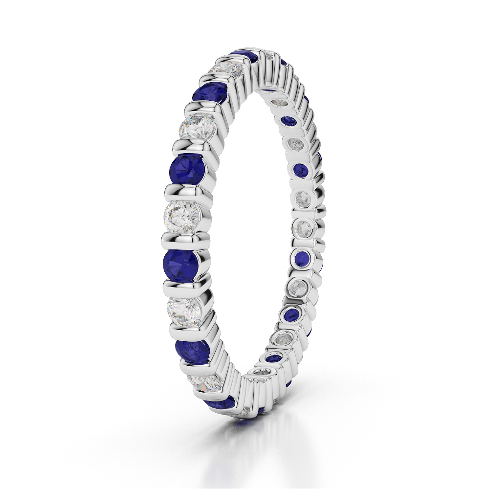 2MM Bar Set Blue Sapphire Full Eternity Ring With Diamond 0370