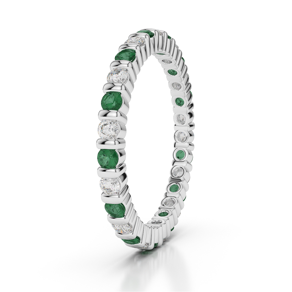 2MM Bar Set Emerald Full Eternity Ring With Diamond 0370