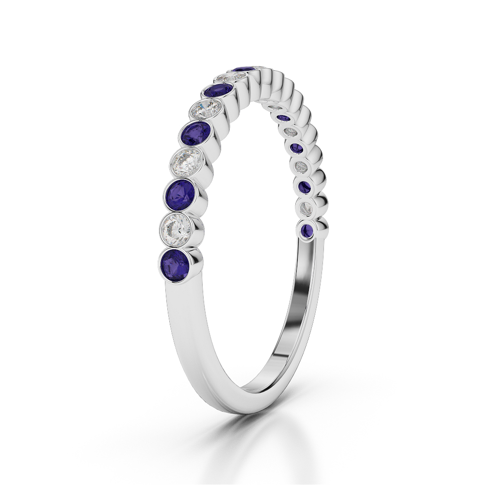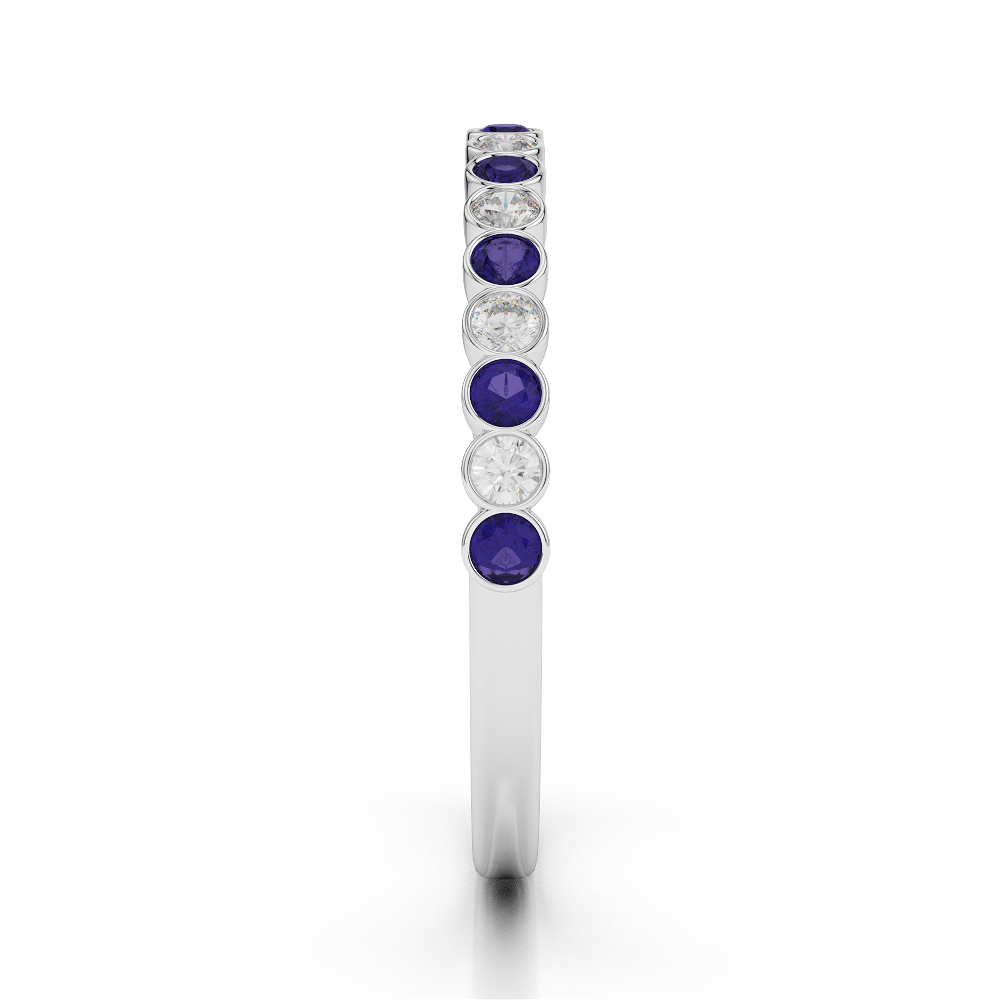 2MM Bezel Diamond Half Eternity Ring With Tanzanite 0379