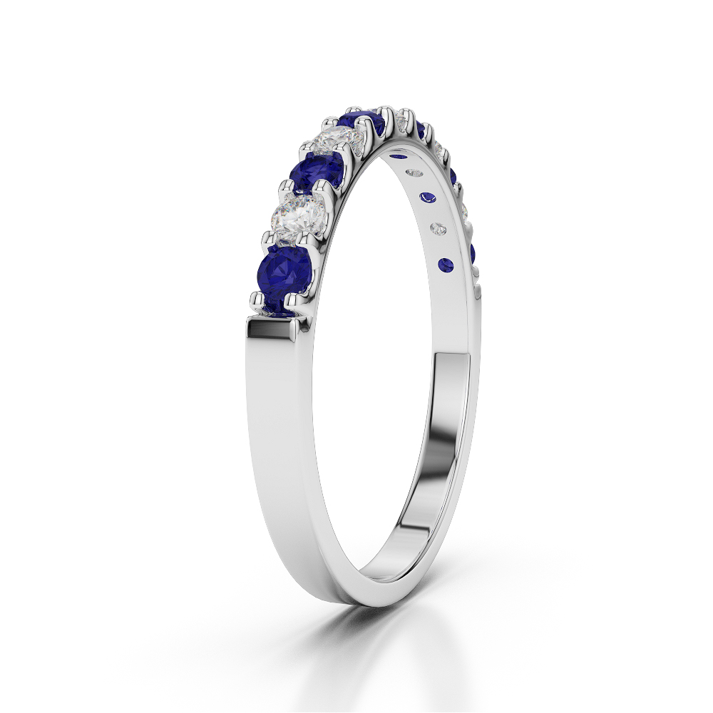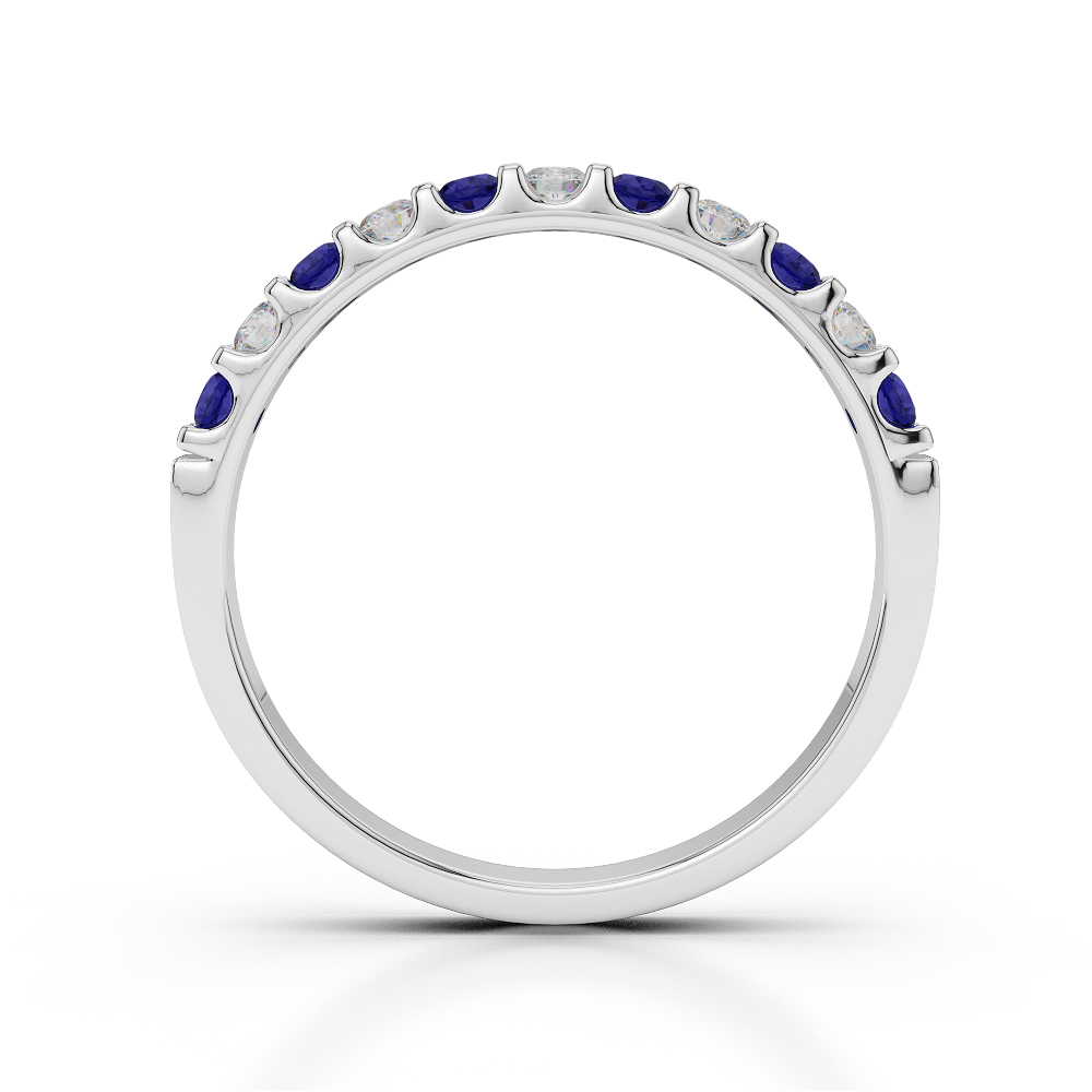 2MM Claw Set Diamond Half Eternity Ring With Blue Sapphire 0385