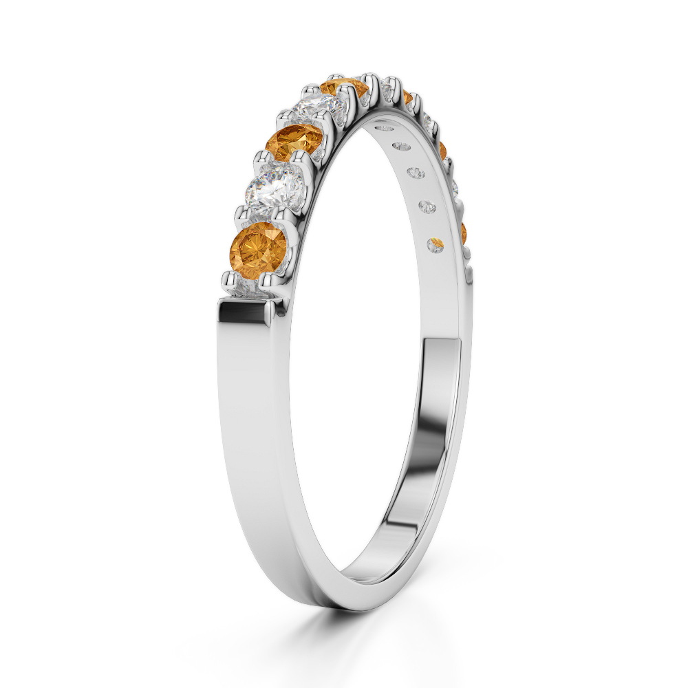 2MM Claw Set Diamond Half Eternity Ring With Citrine 0385