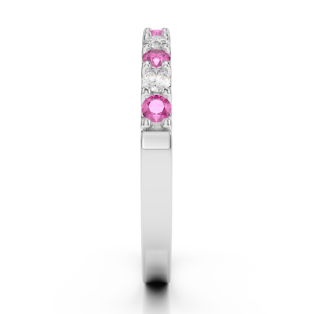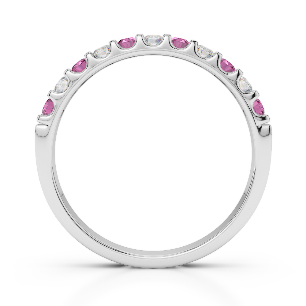 2MM Claw Set Diamond Half Eternity Ring With Pink Sapphire 0385