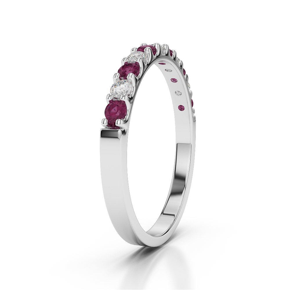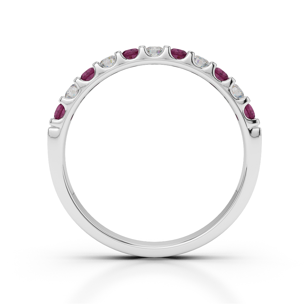 2MM Claw Set Diamond Half Eternity Ring With Ruby 0385