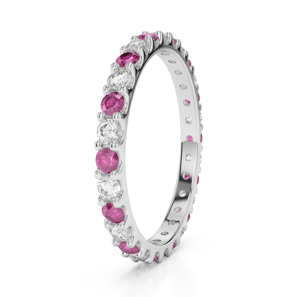 2MM Round Cut Pink Sapphire Full Eternity Ring With Diamond 0382