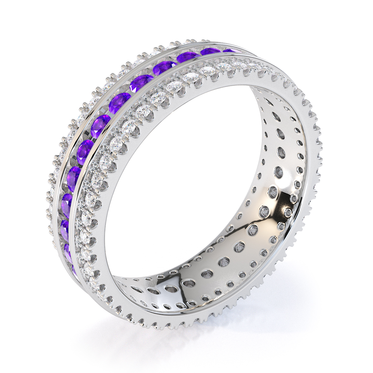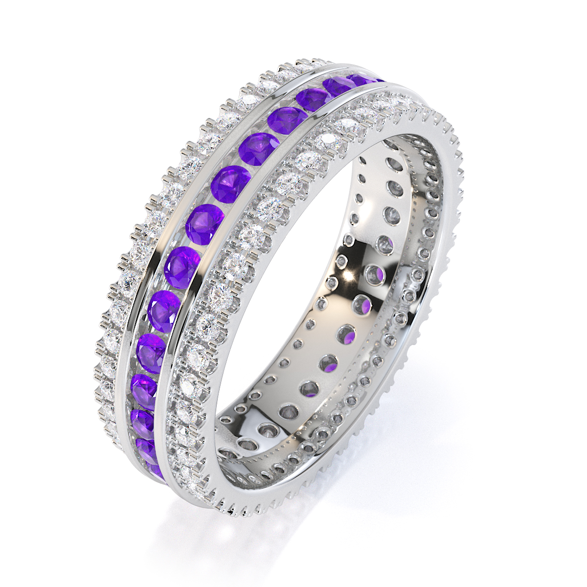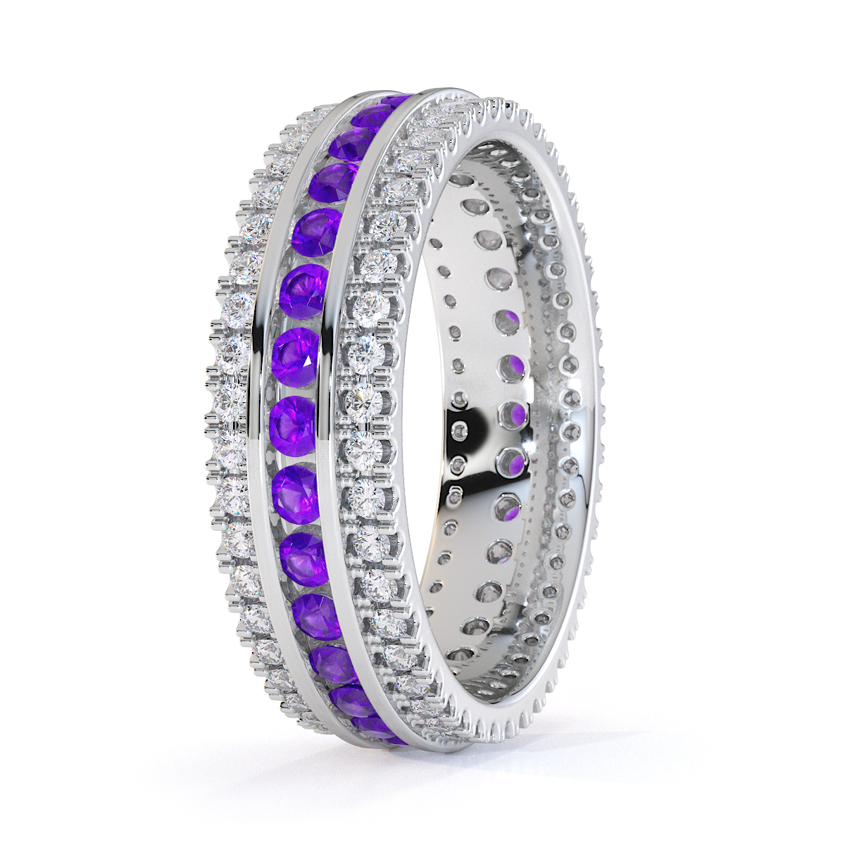 3 Row Channel Set Amethyst and Prong Set Diamond Full Eternity Ring 0450