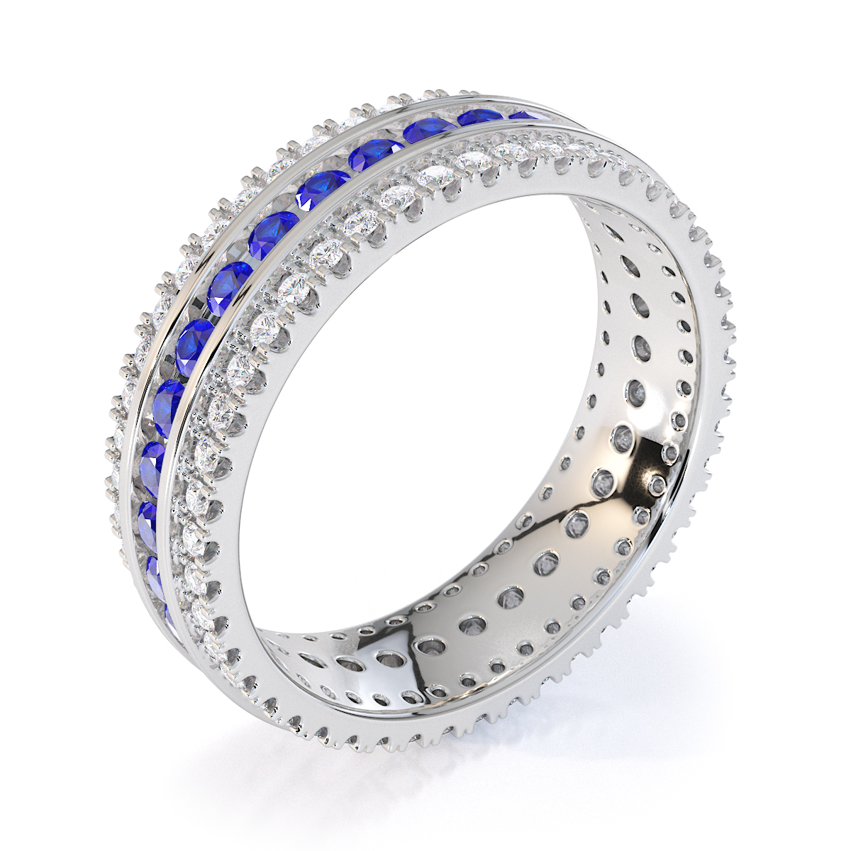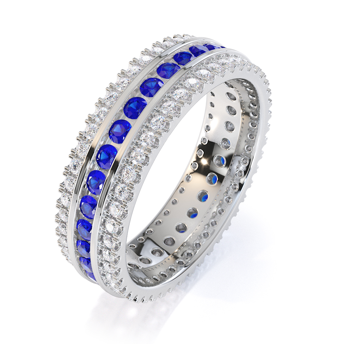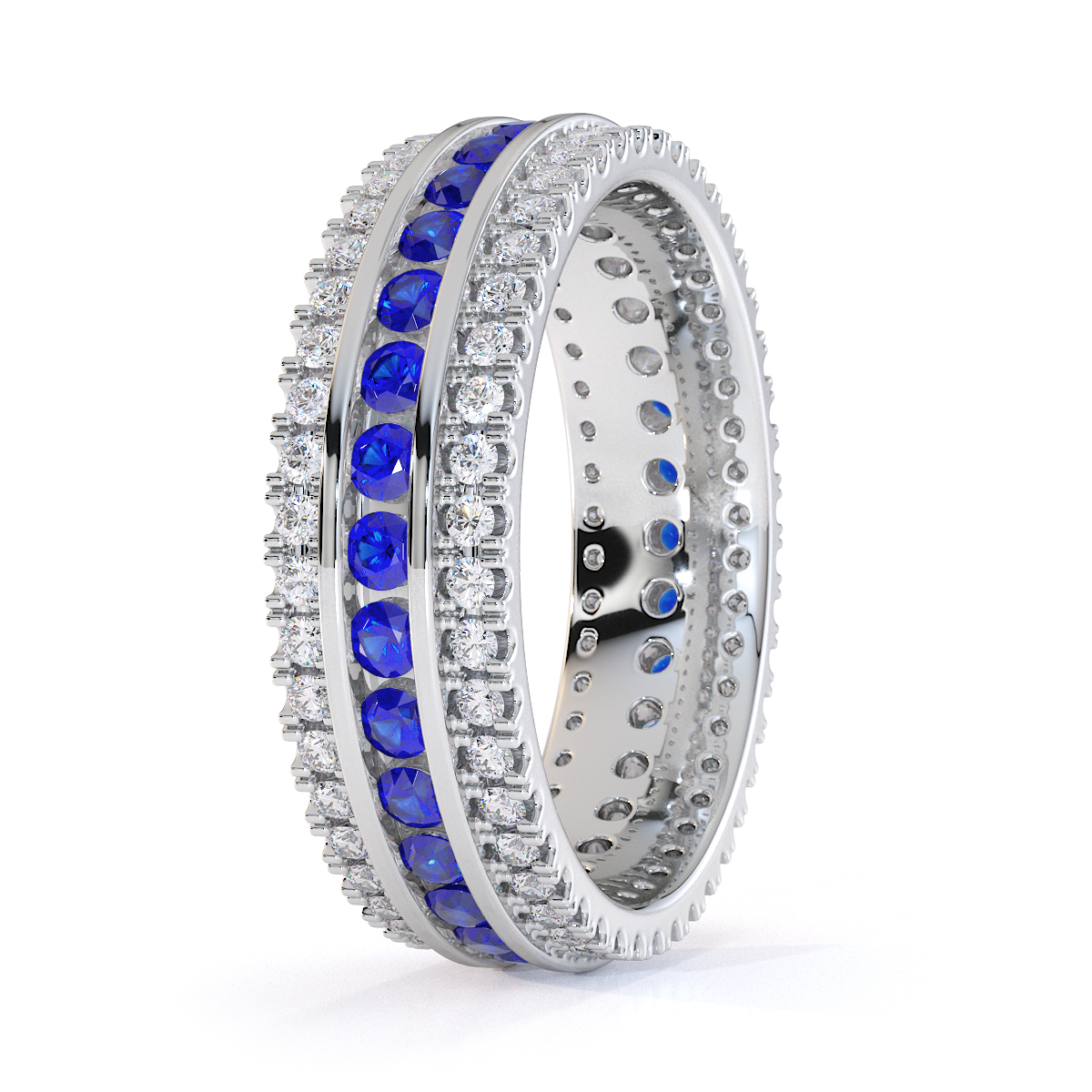 3 Row Channel Set Blue Sapphire and Prong Set Diamond Full Eternity Ring 0450