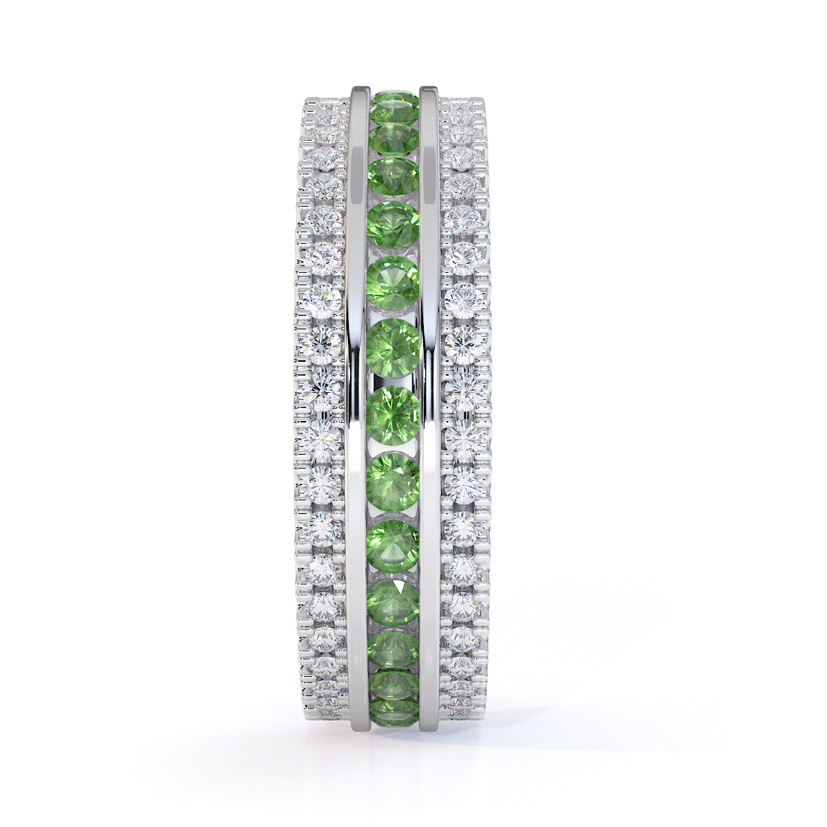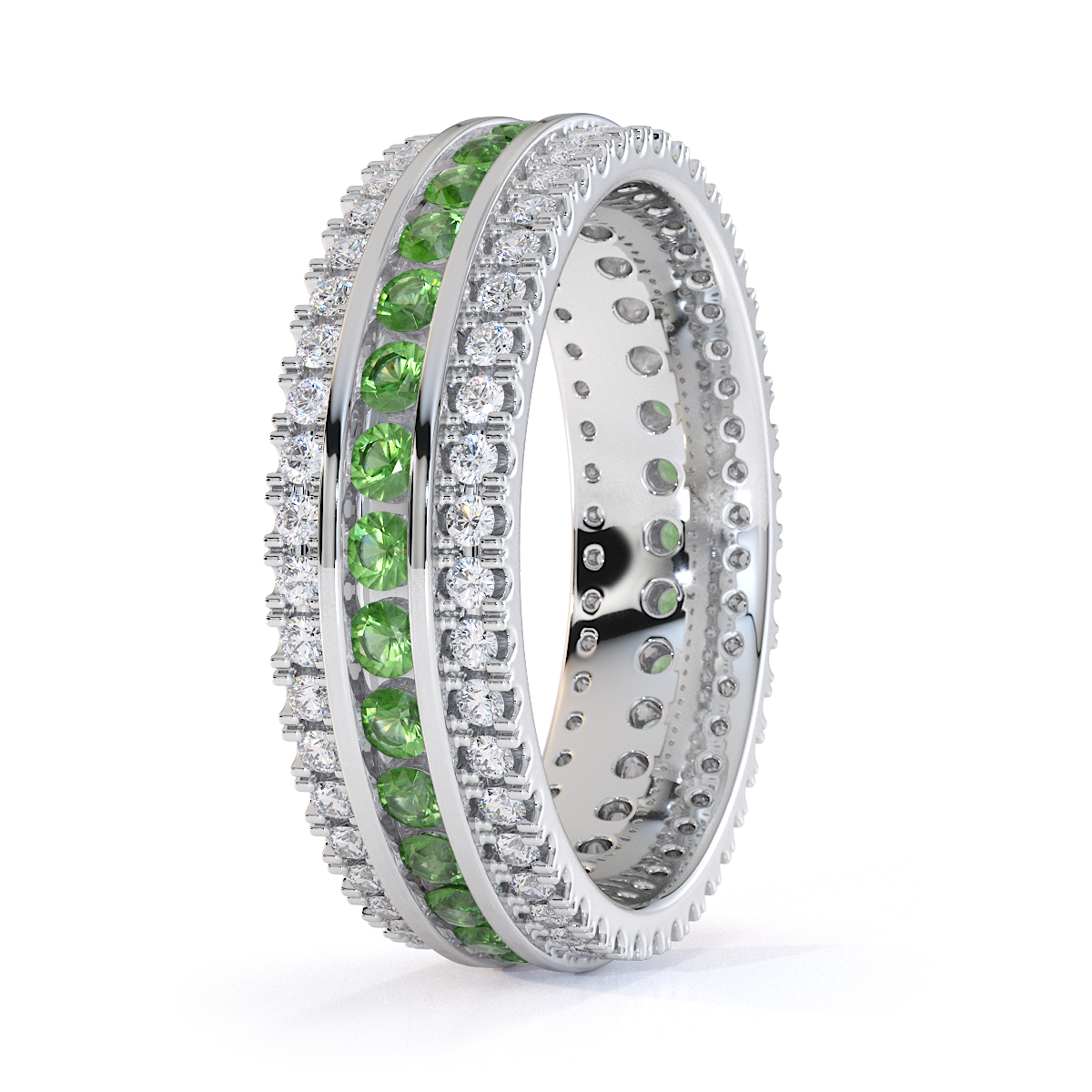 3 Row Channel Set Green Tourmaline and Prong Set Diamond Full Eternity Ring 0450