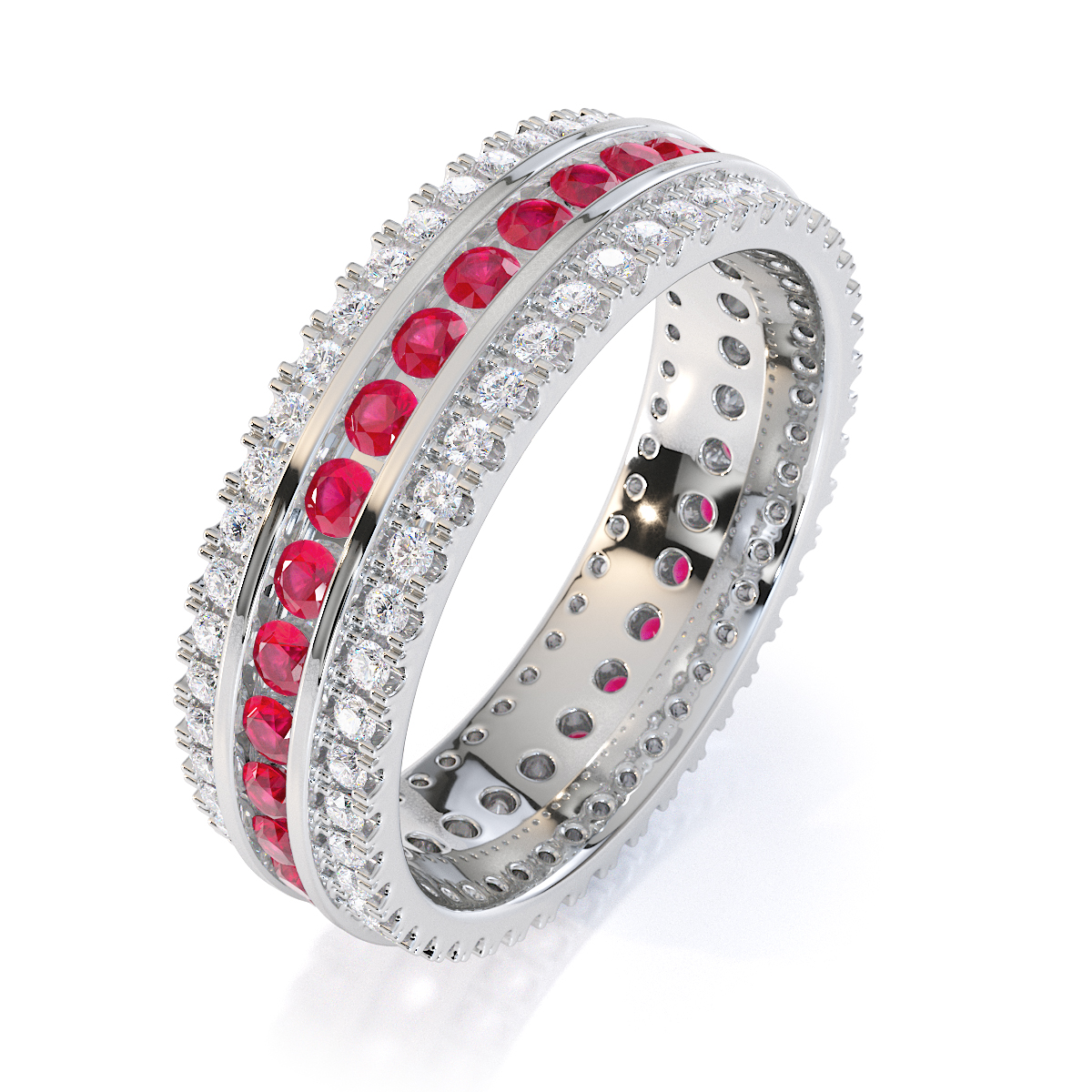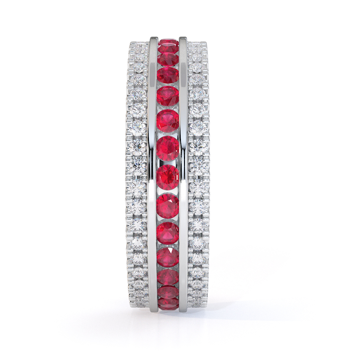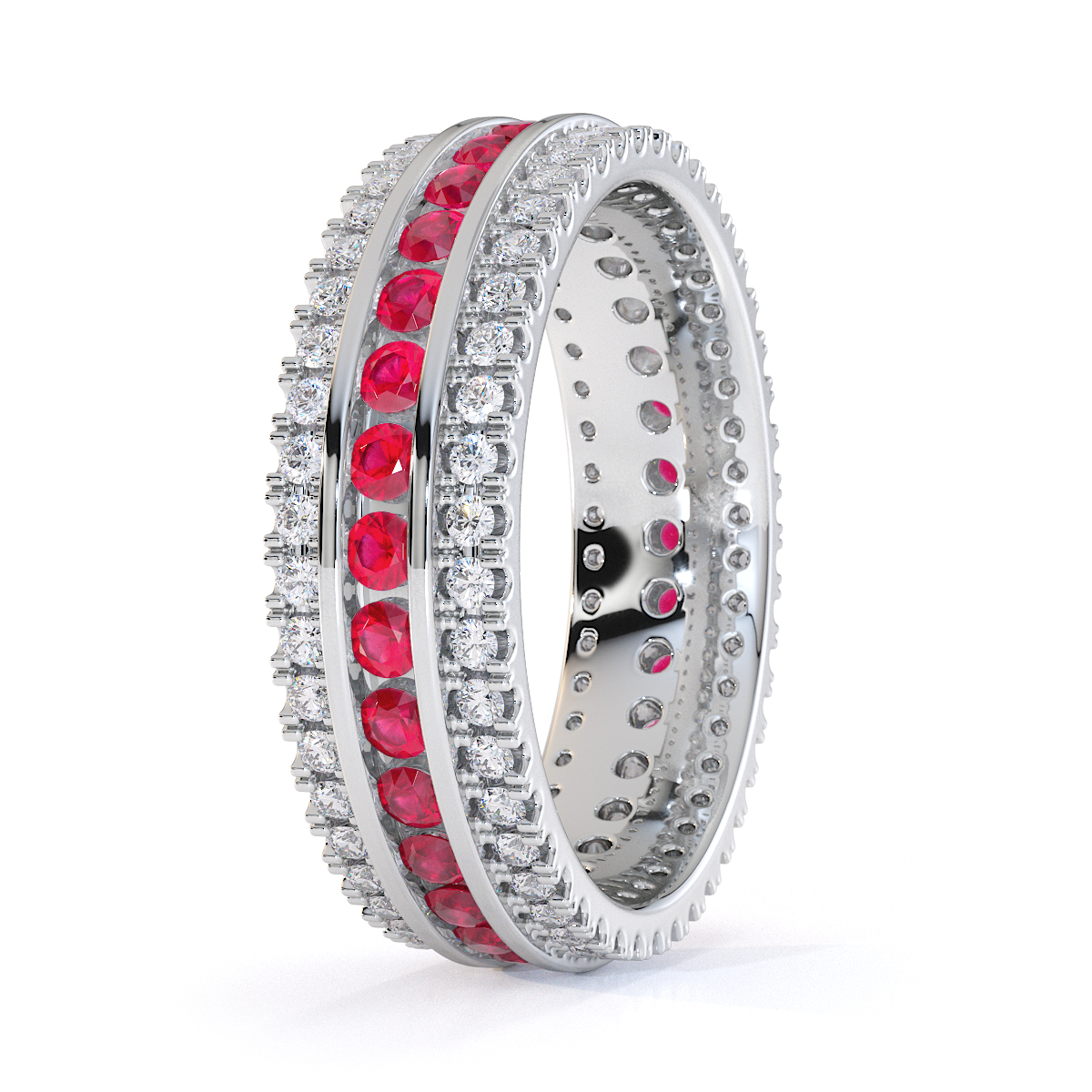 3 Row Channel Set Ruby and Prong Set Diamond Full Eternity Ring 0450