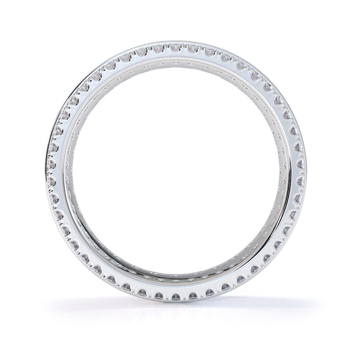 This eternity ring features rubies and diamonds, showcasing elegance and sophistication. It is a full-eternity ring with both split prong and channel settings, ensuring maximum security. The regal charm of the rubies and the radiant sparkle of the diamonds make it a true symbol of commitment and style.
