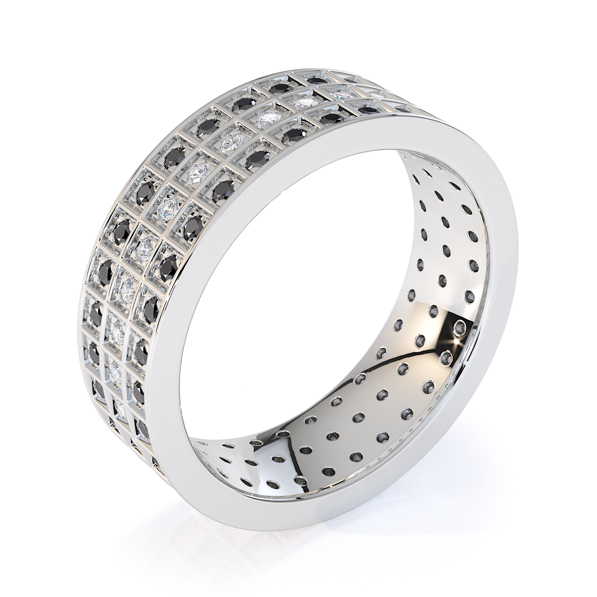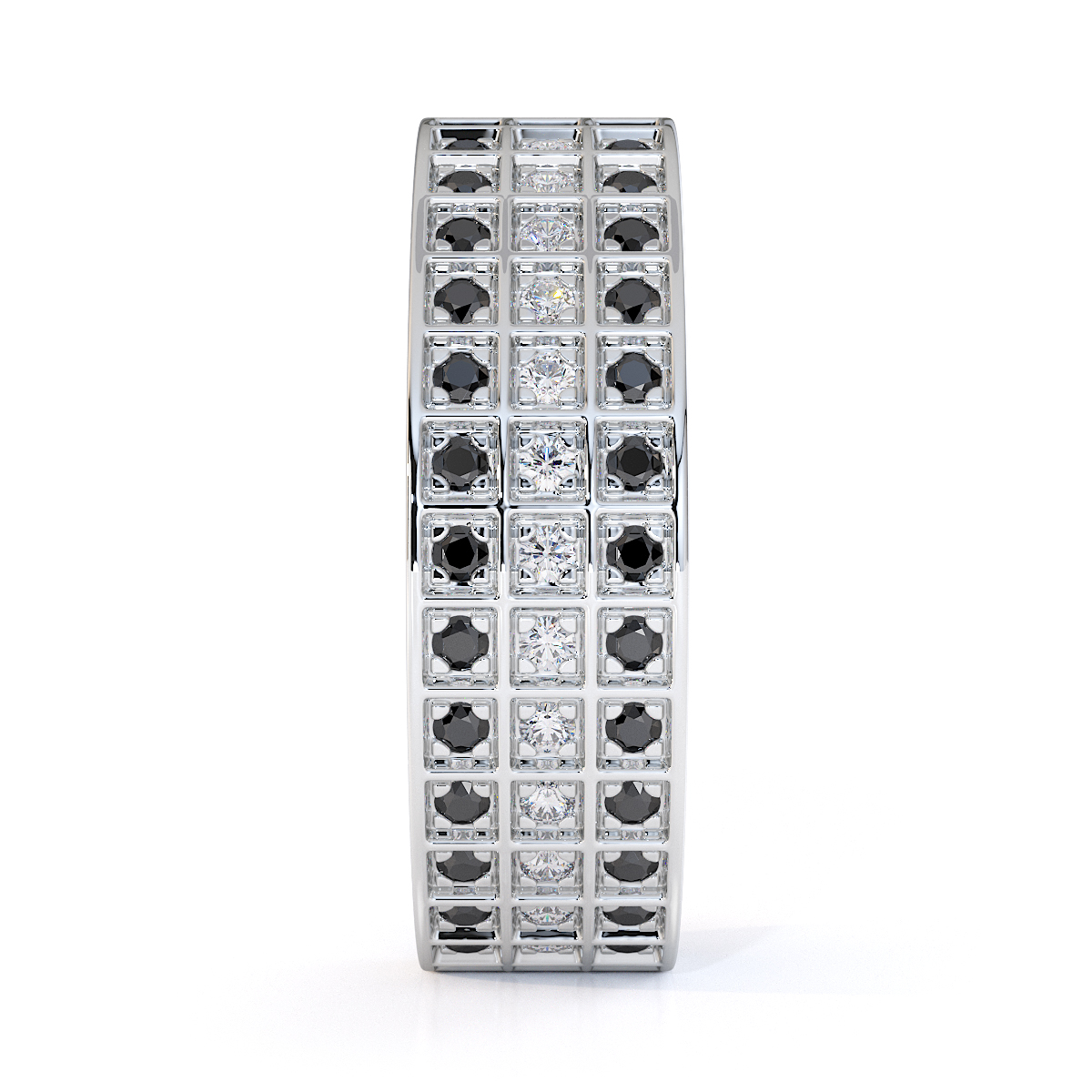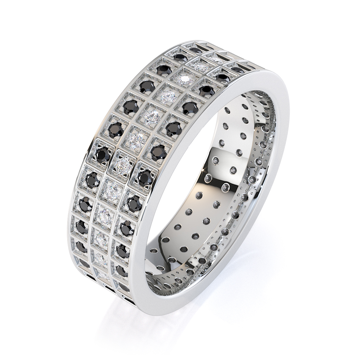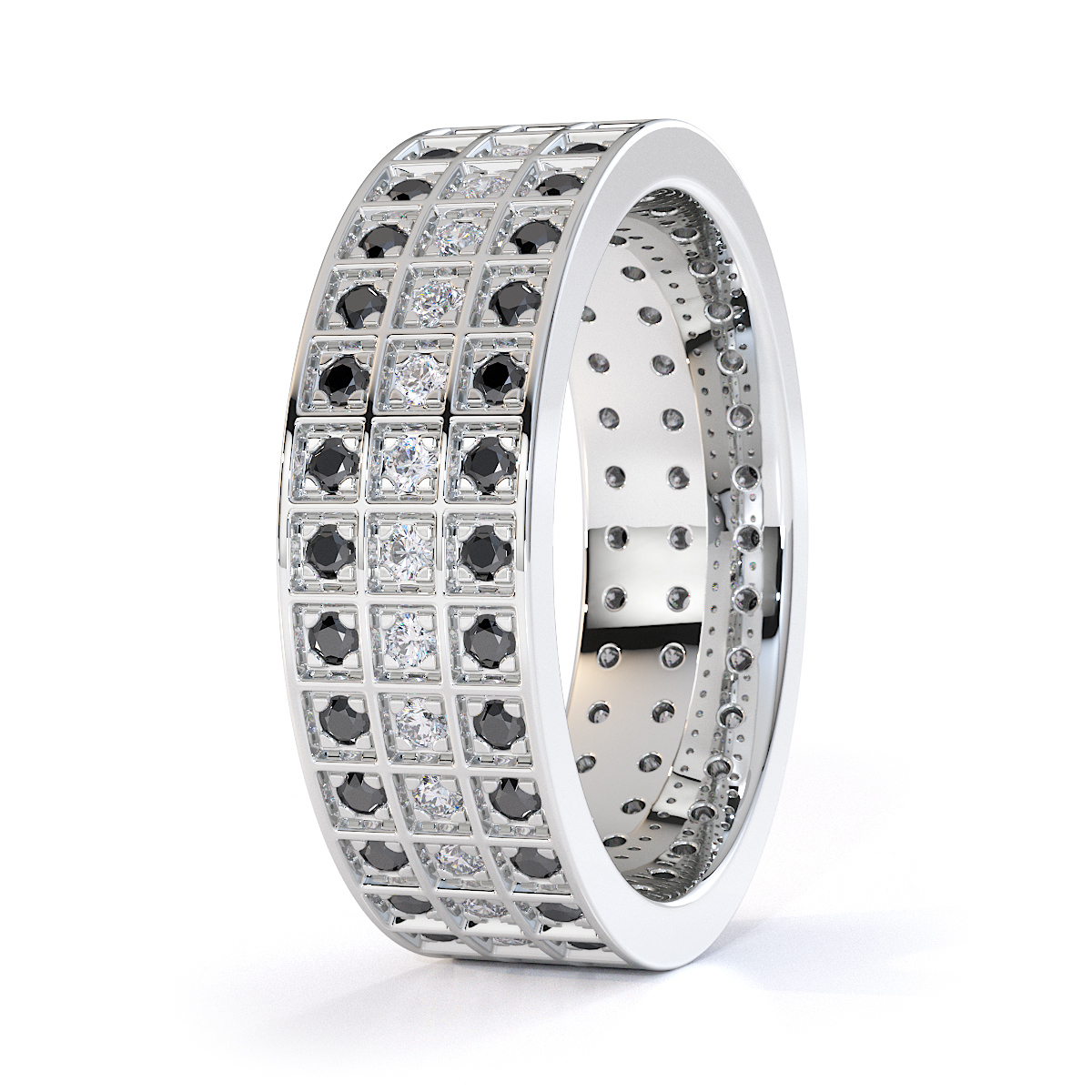 This diamond and black diamond eternity ring is a timeless and elegant piece of jewellery, symbolising eternal love and commitment. The full eternity design encircles the entire band, while the prong setting enhances the gem' sparkle. Perfect for special occasions or as a unique eternity ring, this piece is sure to be cherished for a lifetime.