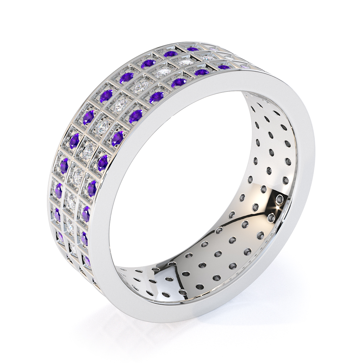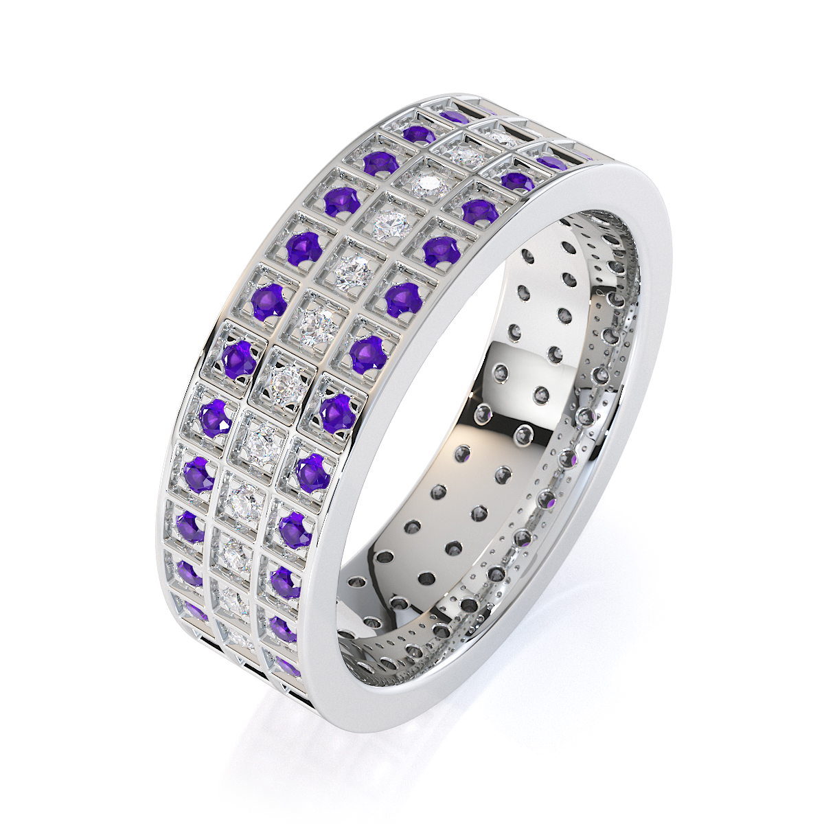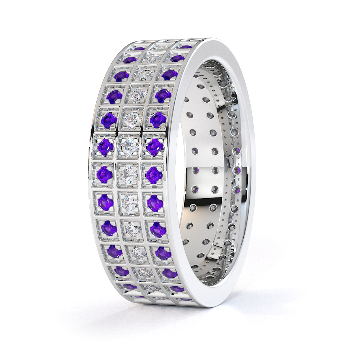 3 Row Claw Set Diamond and Amethyst Full Eternity Ring 0436