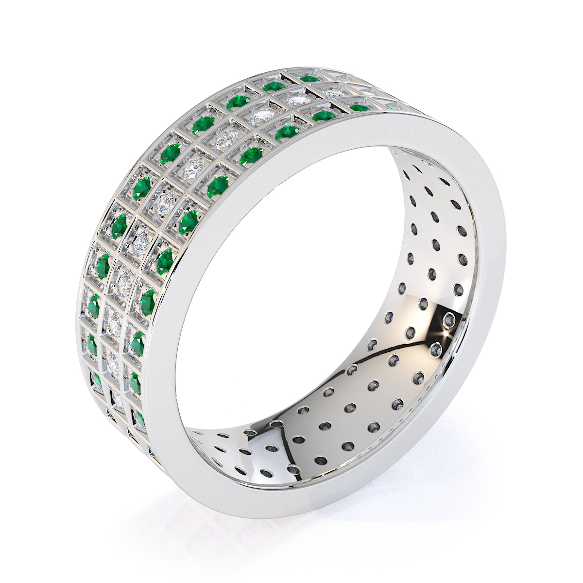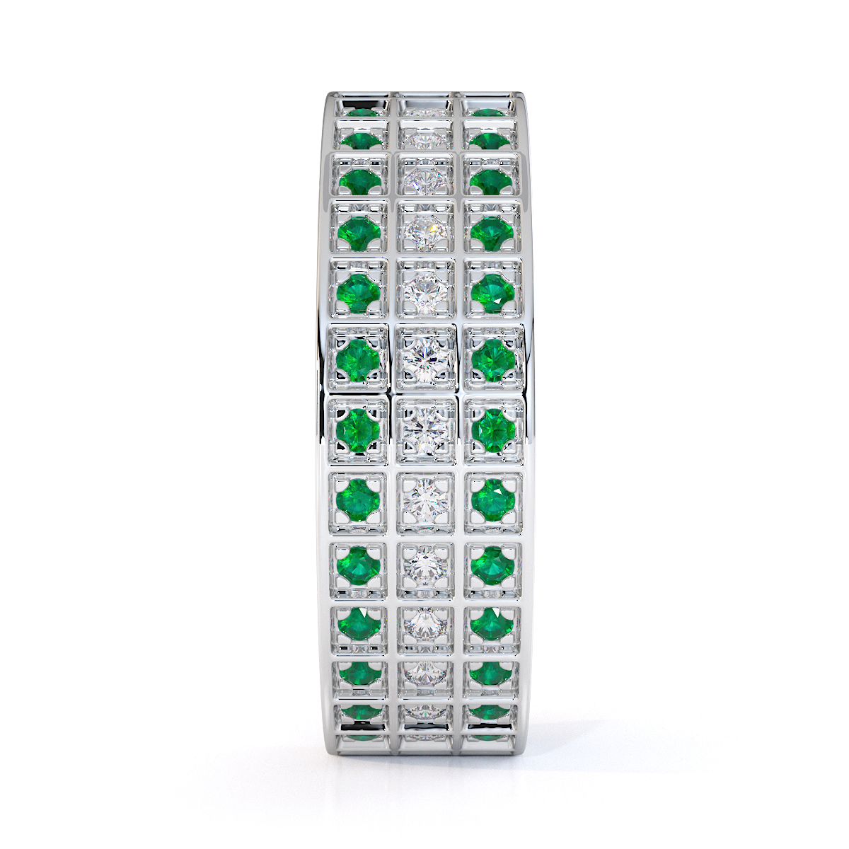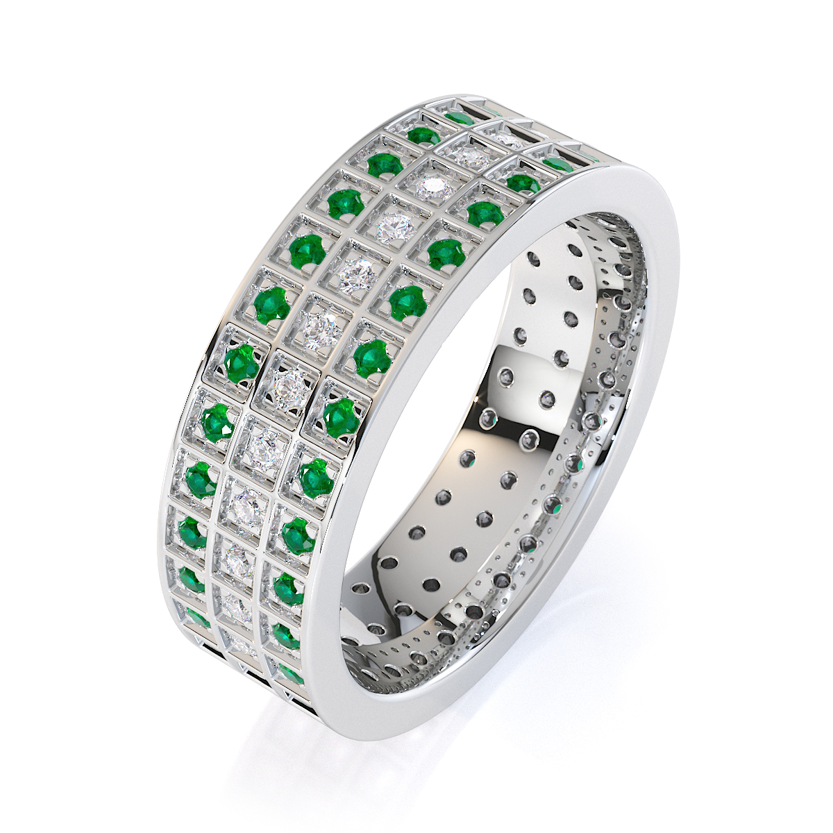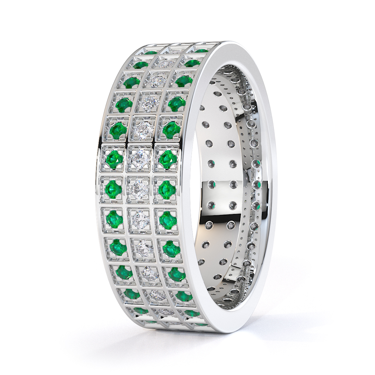3 Row Claw Set Diamond and Emerald Full Eternity Ring 0436