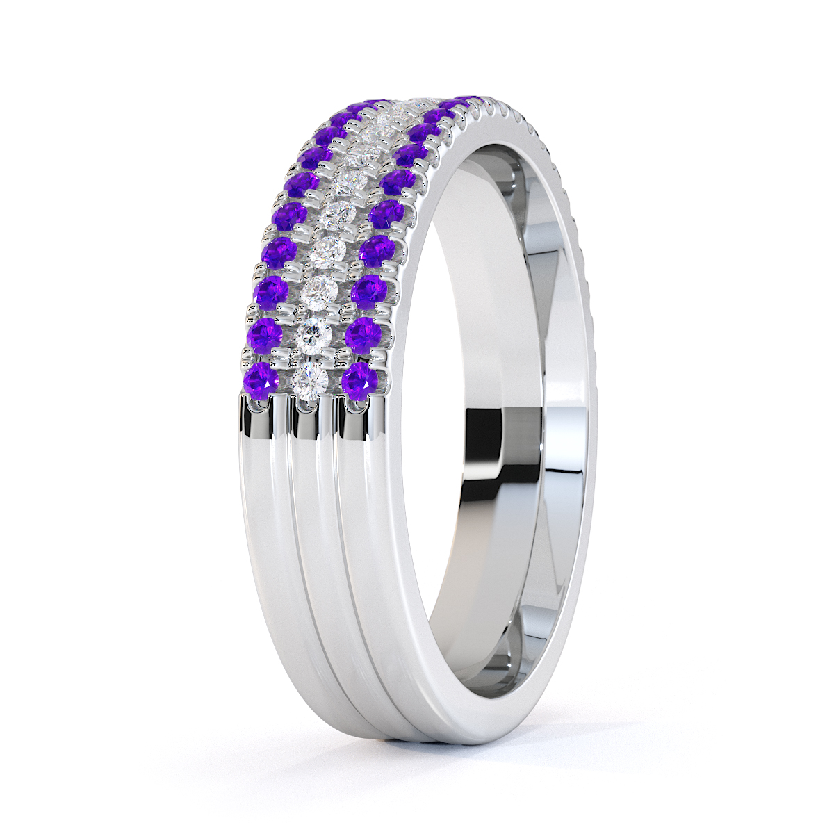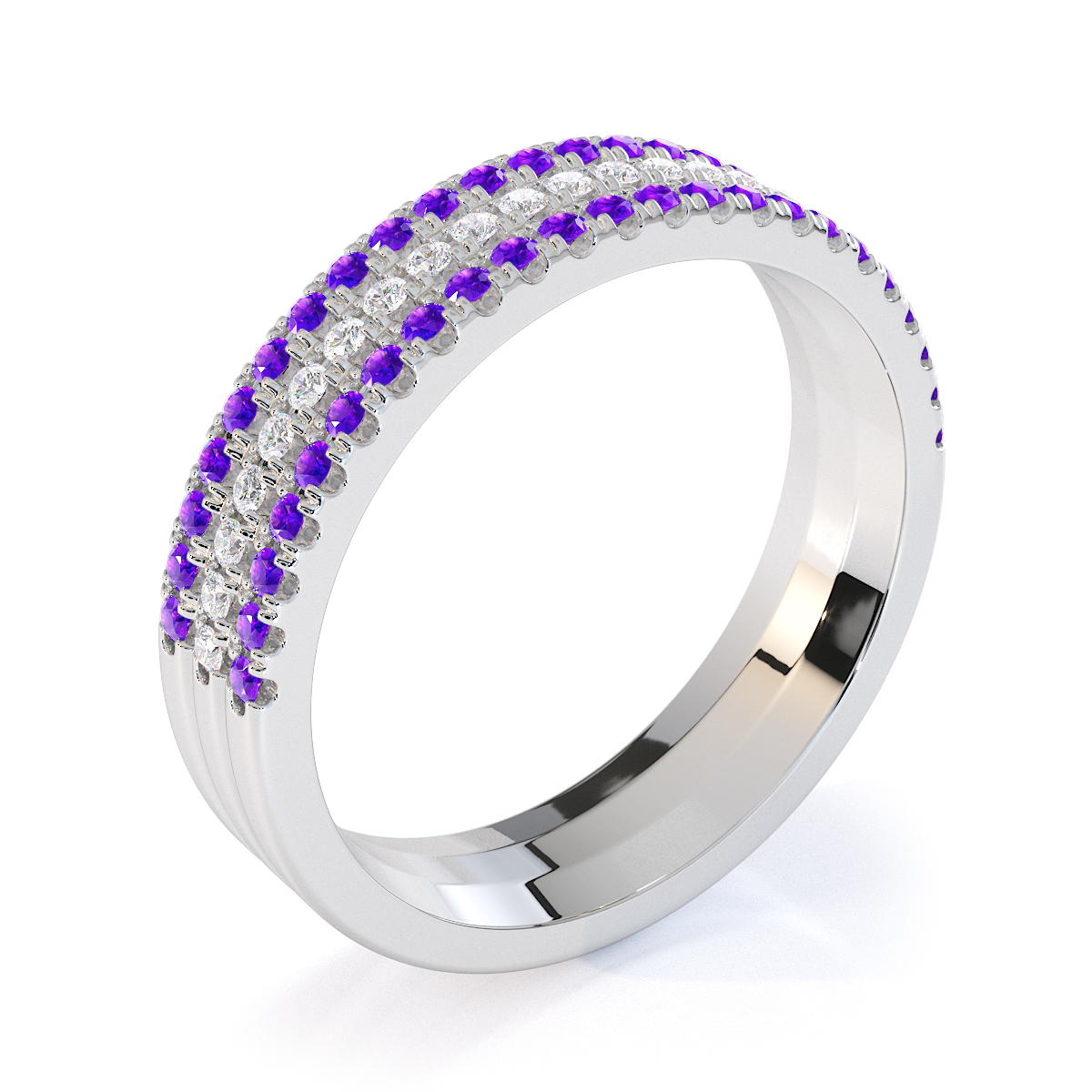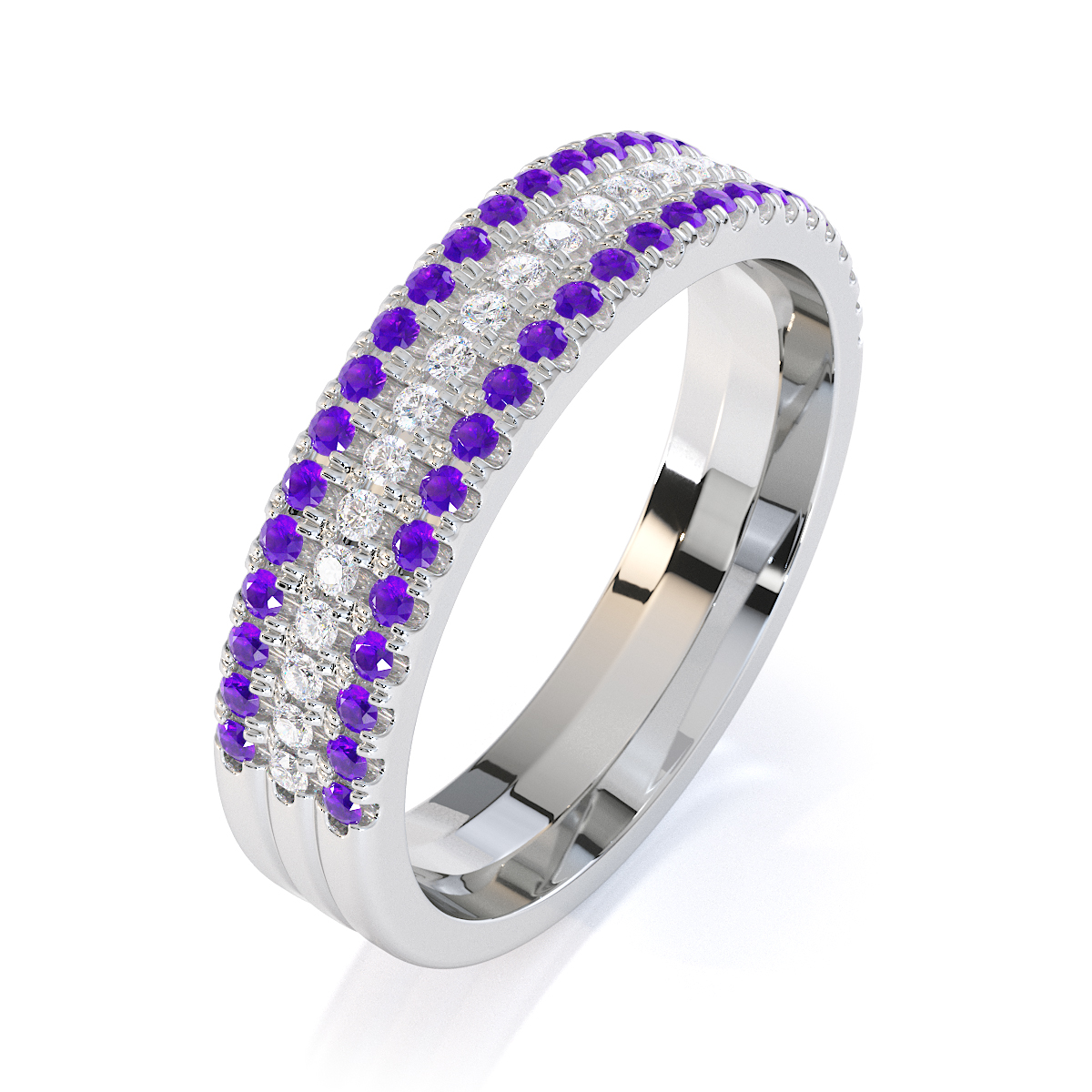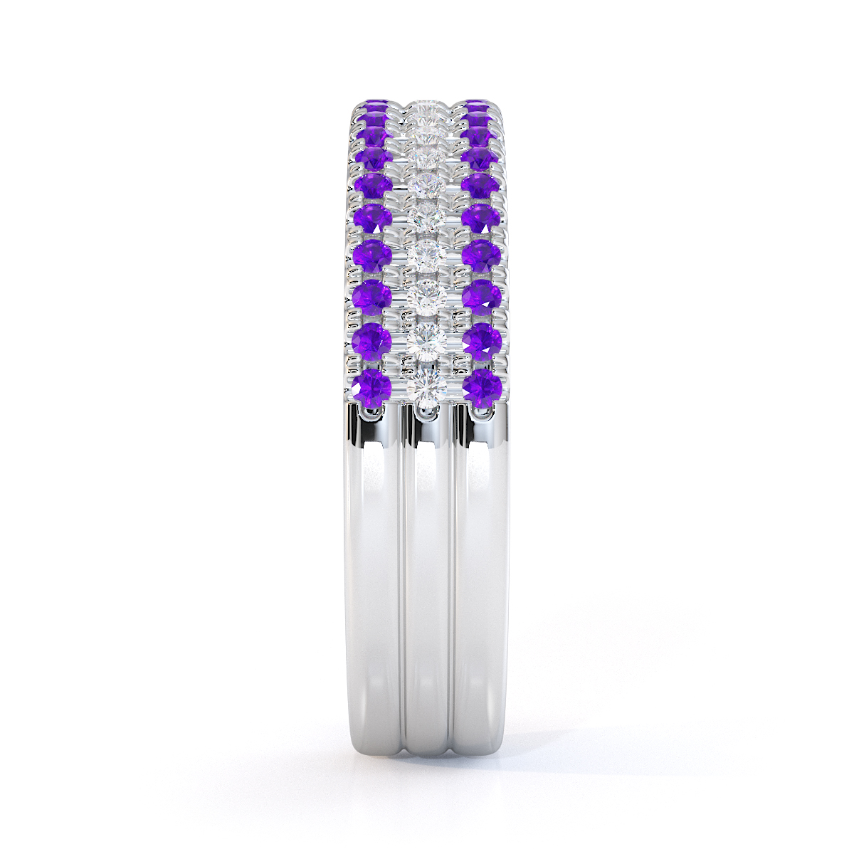 3 Row Prong Set Diamond Half Eternity Ring With Amethyst 0443