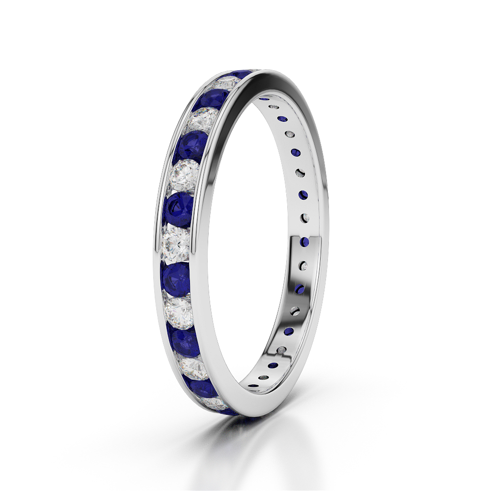 3MM Round Cut Blue Sapphire Full Eternity Ring With Diamond 0365
