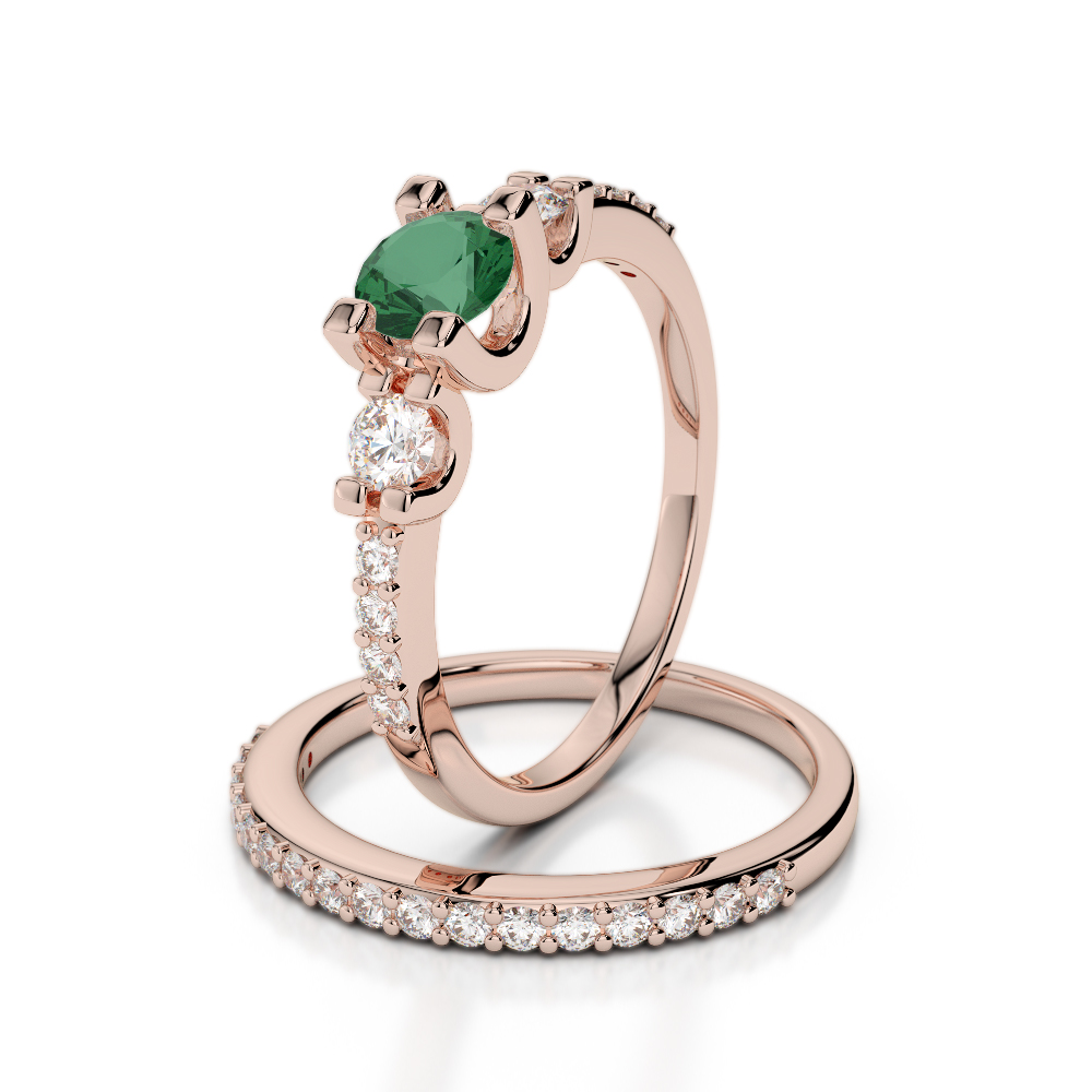 4 Claw Set Bridal Set Ring With Diamond and Emerald 0310